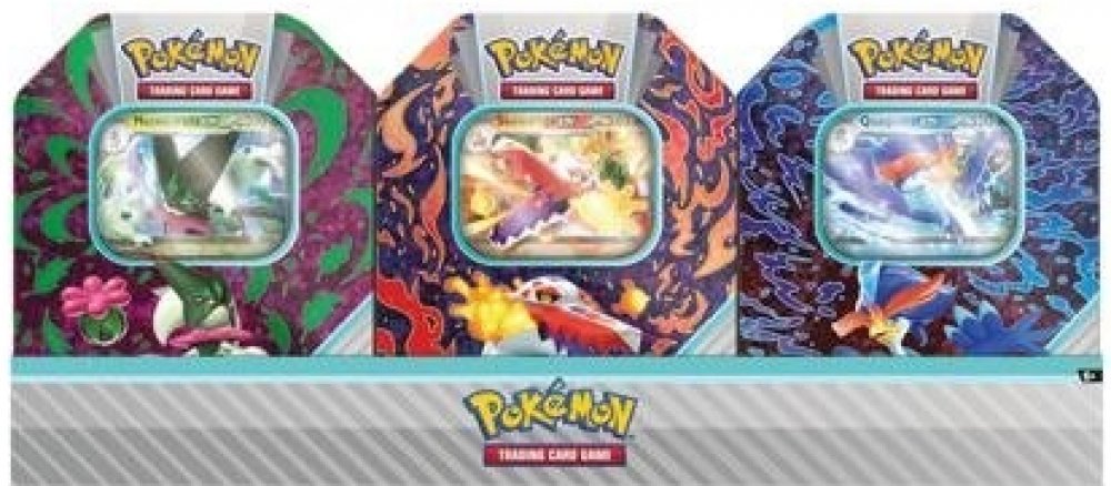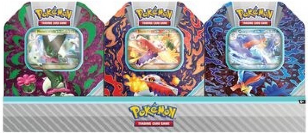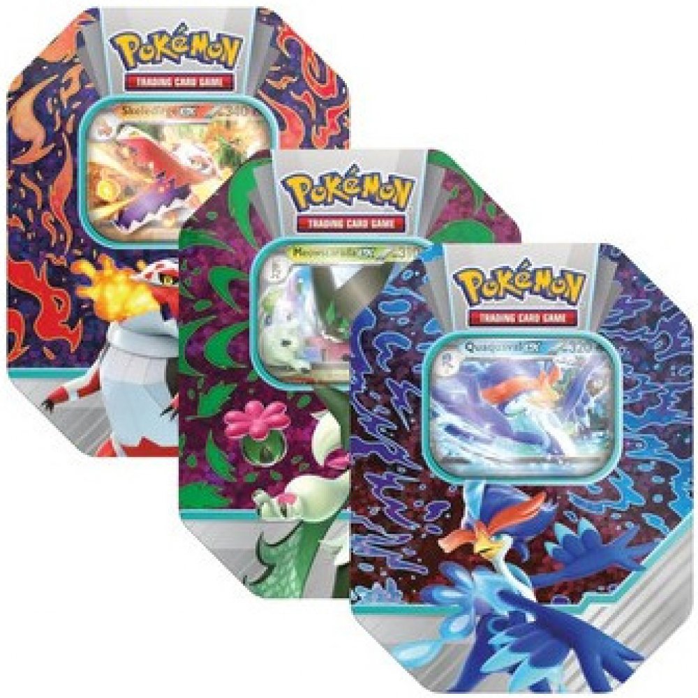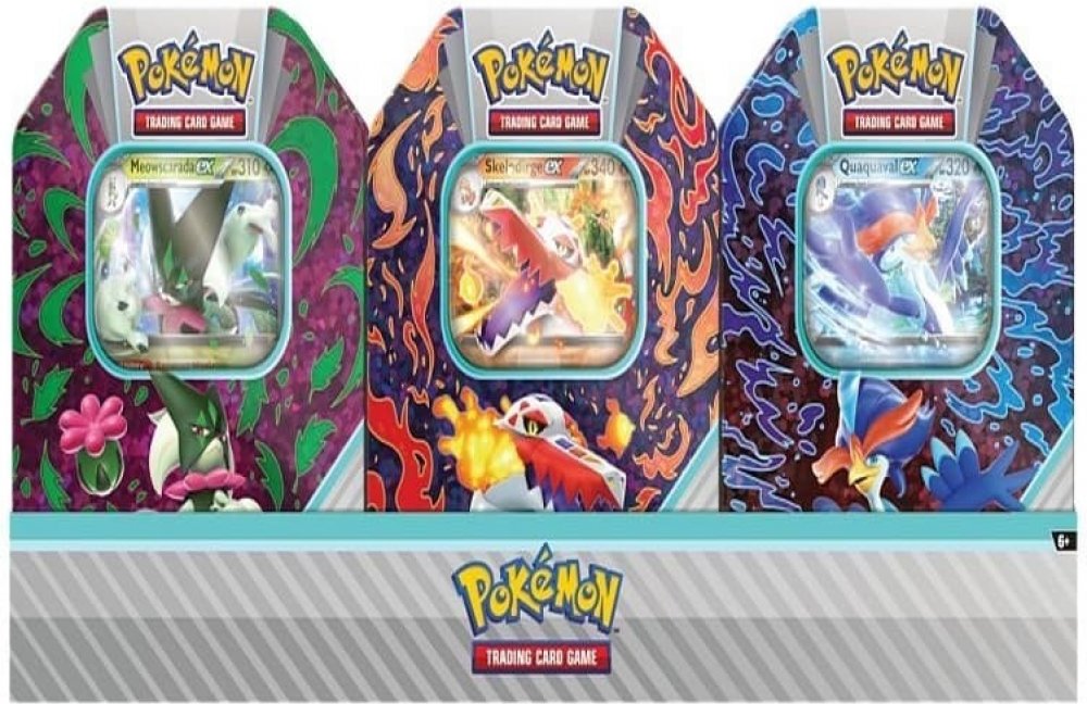 Vyber si záludné kouzlo Meowscarada ex, rozverný zpěv Skeledirge ex nebo oslnivé taneční pohyby Quaquaval ex v Pokémon TCG: Paldea Partners Tin.