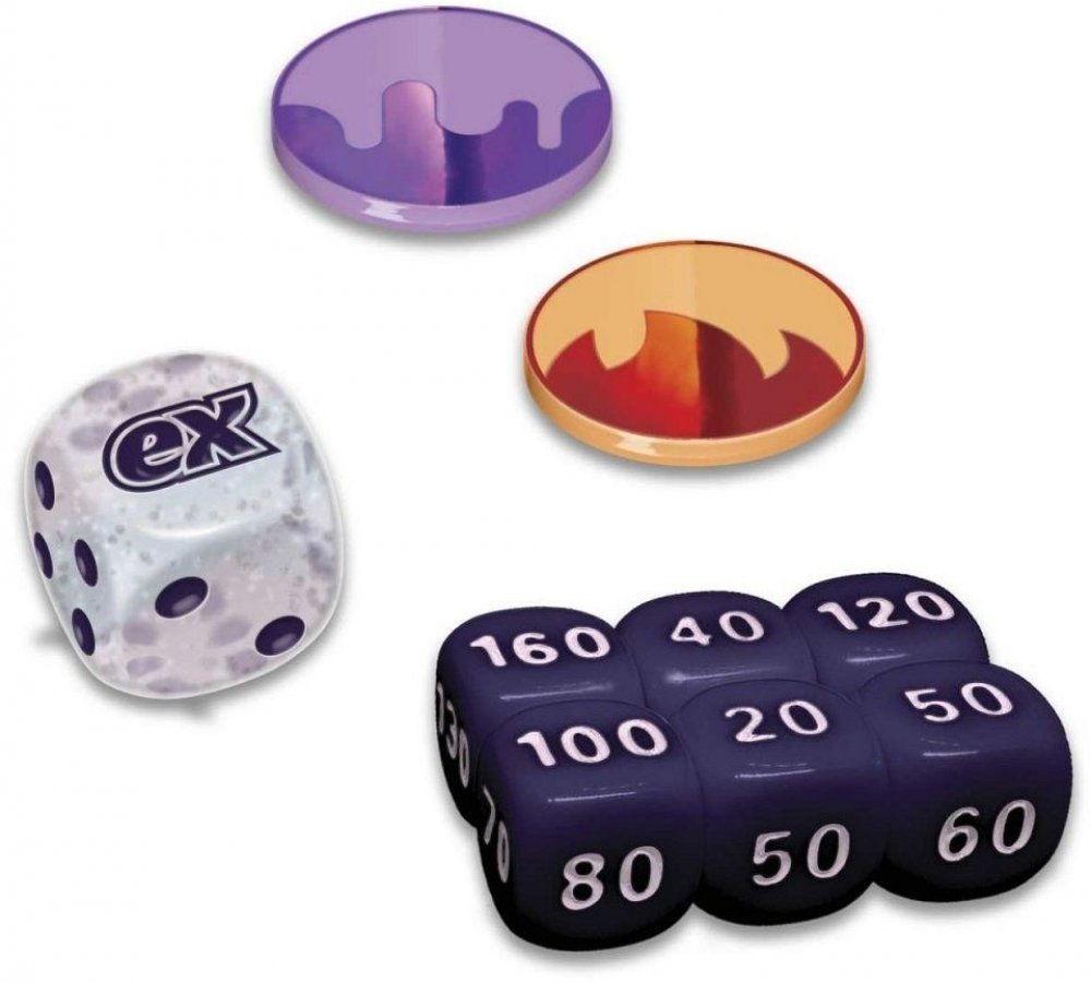 - Herní příslušenství: 6 kostek pro značení poškození, házecí kostka pro herní mechaniku a akrylové žetony.