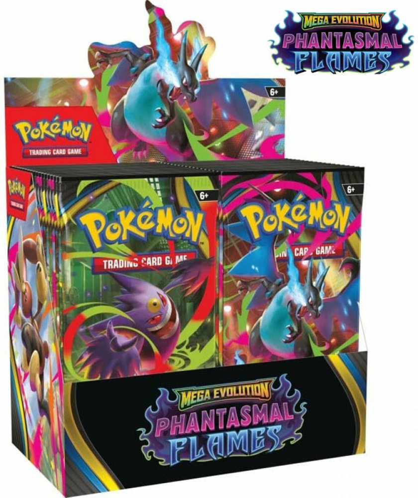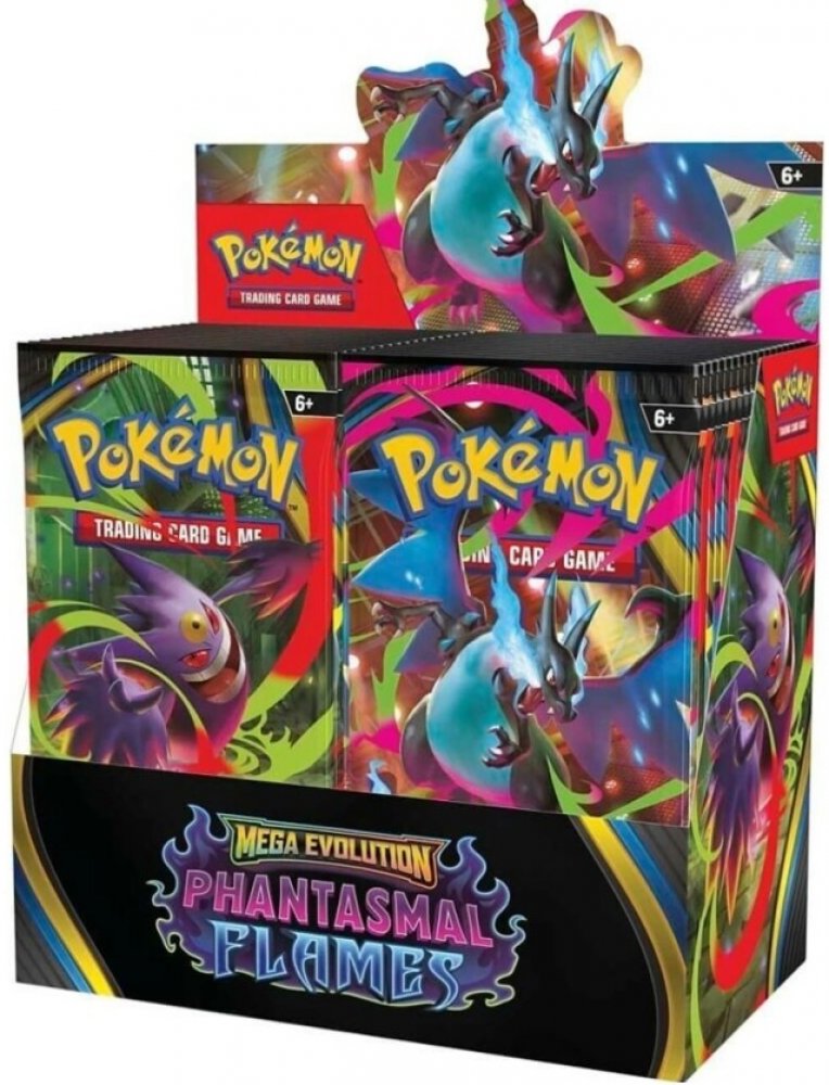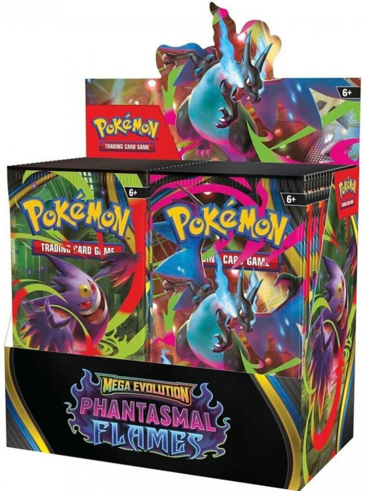 Žhnoucí modré plameny se rozléhají po temném bojišti, zatímco Mega Charizard X ex stoupá vzhůru a shlíží na své protivníky! S mrazivým chladem, který se vyrovná samotnému žáru, se z temnoty pomalu vynořuje silueta Mega Gengara ex – a oba Pokémoni se připravují k souboji. Odhodláni dokázat svou sílu, nastupují také Mega Heracross ex, Mega Lopunny ex a mnozí další Pokémoni, aby ze sebe vydali to nejlepší v rozšíření Pokémon TCG: Mega Evolution — Phantasmal Flames!