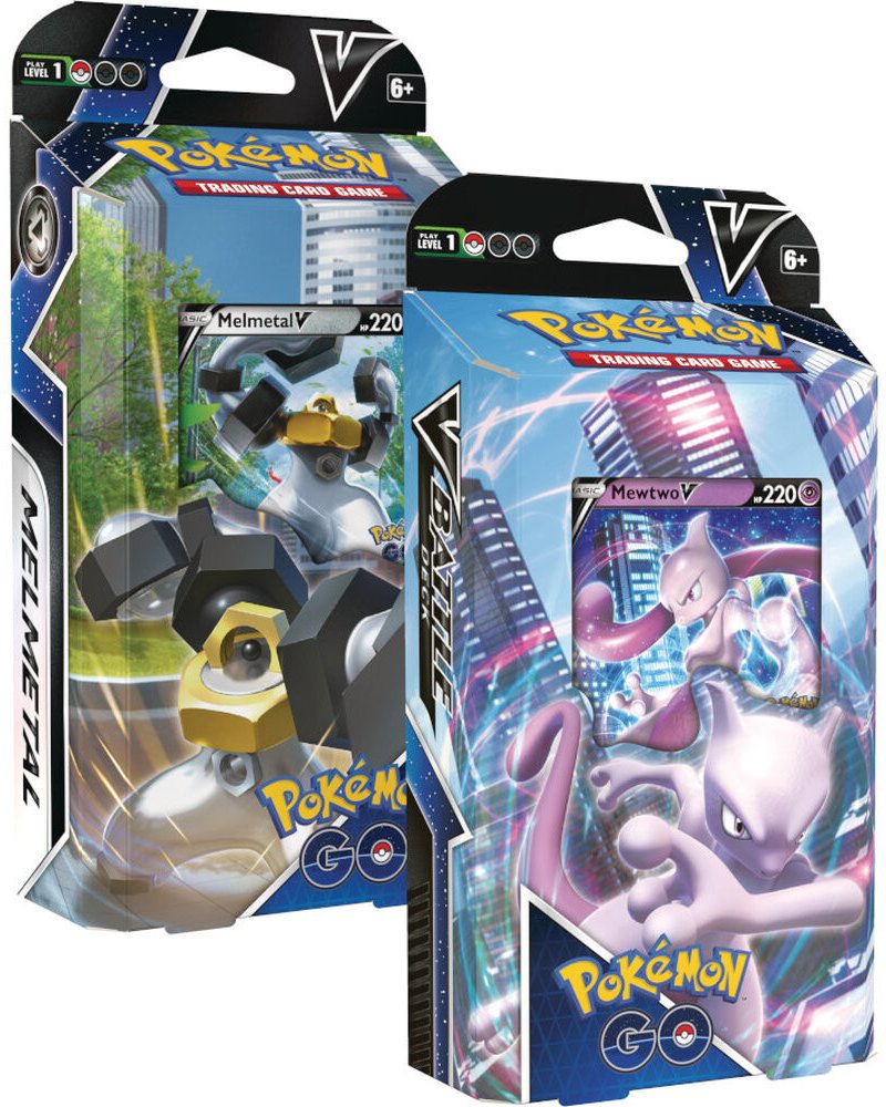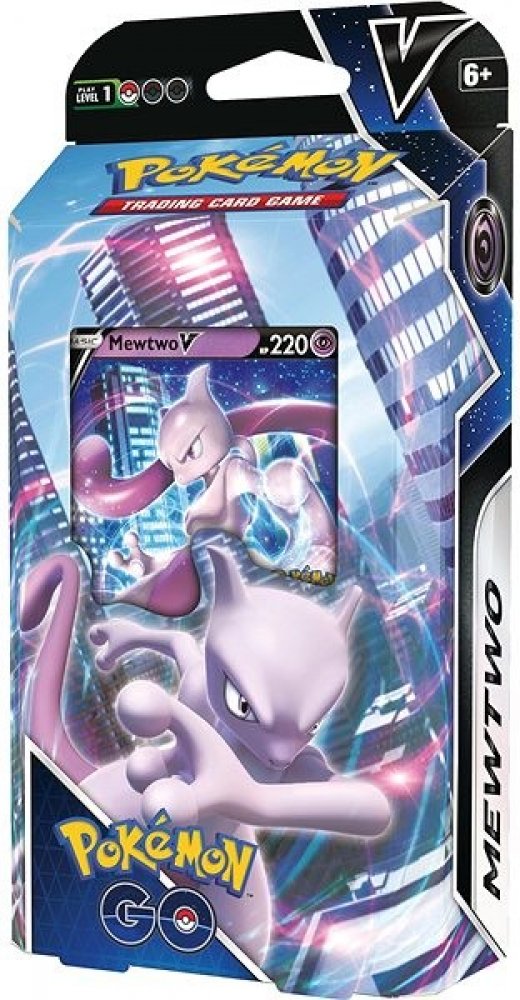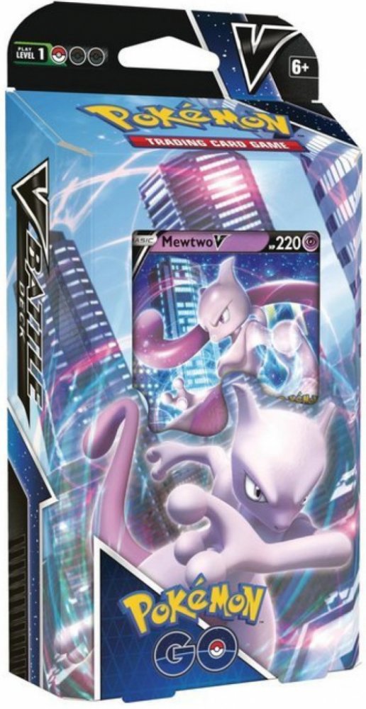 Pokémon TCG Mewtwo V Battle Deck je balení, které obsahuje jeden předem připravený herní balíček s psychickým Pokémonem Mewtwo V a herní příslušenství, které ocení zejména začátečníci, kteří chtějí začít hrát karetní hru Pokémon a mít ve sbírce zajímavý herní balíček se silným Pokémonem V. Součástí balení je také kód do online hry a pravidla v anglickém jazyce. Psychický Pokémon Mewtwo dostává svůj unikátní Pokémon V Battle Deck! Získejte silný herní balíček s Pokémonem Mewtwo, který v tomto balení dostává unikátní V Promo kartu, kterou lze získat jen v tomto balení předpřipraveného herního balíčku. V balení dále naleznete herní papírovou podložku, anglická pravidla a další herní příslušenství! Vzrušující série bitev právě začíná. Pokémon V Battle Deck (či také Theme deck neboli předpřipravený balíček) je speciální produkt karetní hry Pokémon, který obsahuje jeden předpřipravený herní balíček s 60 kartami a příslušenství potřebné ke hraní. Pokémon sada Pokémon GO je speciální edice do karetní hry Pokémon TCG. Jednotlivé doplňkové Booster balíčky lze získat pouze ve vybraných produktech Pokémon TCG Pokémon GO. Edice je zaměřena na nejoblíbenější Pokémony z mobilní hry Pokémon GO! Balení Mewtwo V Battle deck obsahuje:
