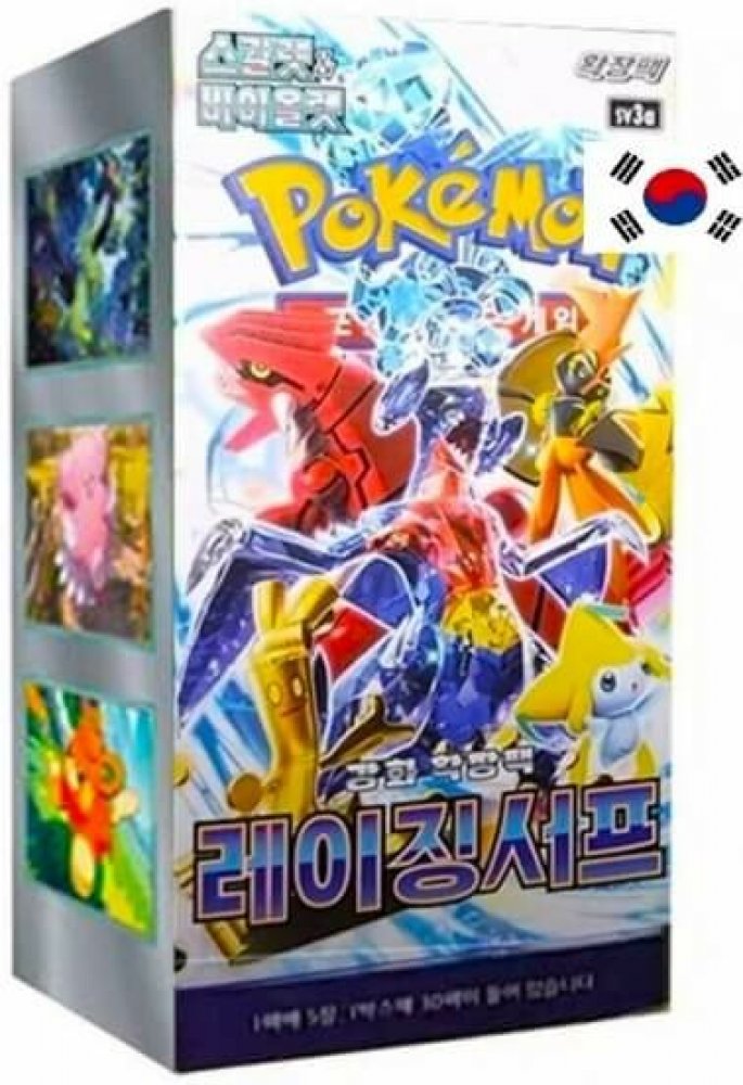 Pokémon Raging Surf Booster Box korejsky obsahuje 30 balíčků Pokémon v korejském jazyce. V každém balíčku najdete 5 karet. Celkem tak získáte 150 karet.