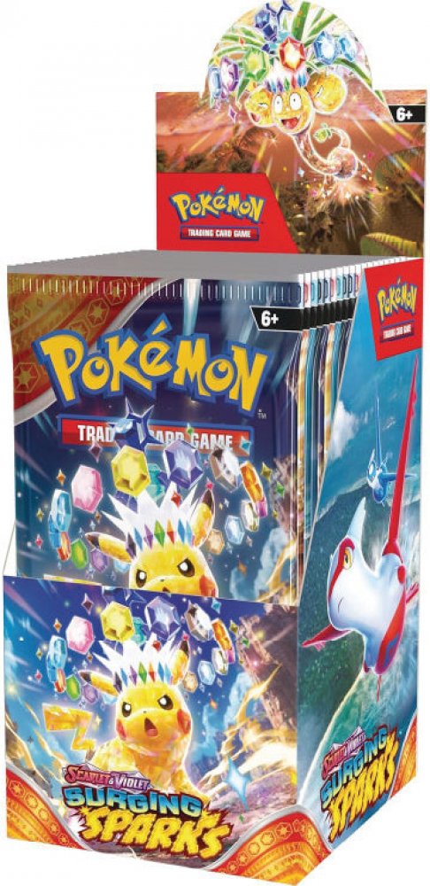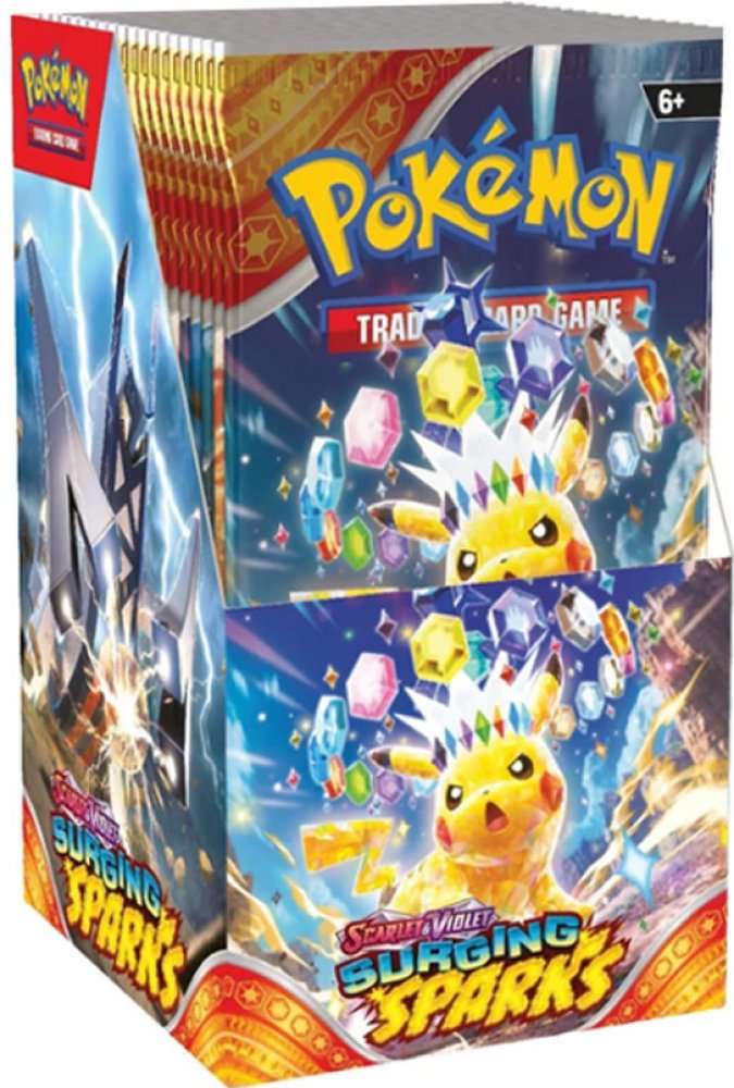 Energie a rychlost v jedné sadě Surging Sparks Kiosk Booster Box patří mezi dynamické edice Pokémon TCG. Zaměřuje se na elektrické Pokémony s vysokou rychlostí útoků a bojové Pokémony, kteří dokáží ovládnout hru svou silou. Sada nabízí jak nové herní strategie, tak i karty, které potěší sběratele díky atraktivním ilustracím.
