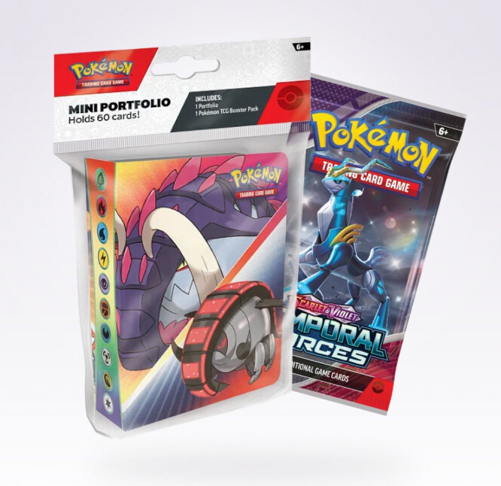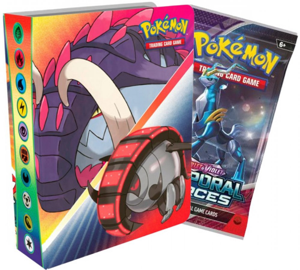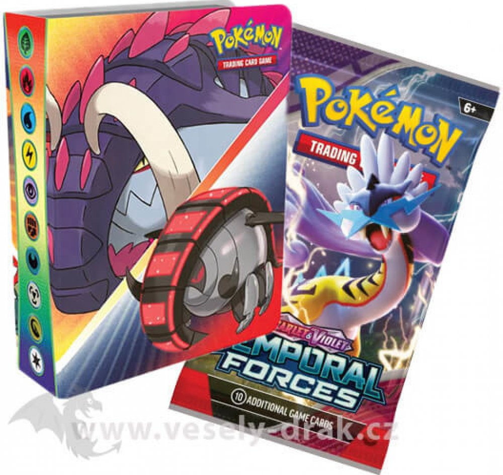 Kapesní album na karty Pokémon Temporal Forces pocket portfolio. V tomto balení obdržíte mini sběratelské album s grafikou Pokémon Temporal Forces, kde lze uschovat až 60 karet Pokémon. K tomu získáte také jeden Booster z edice Pokémon – Temporal Forces. Balení je tak vhodné pro začínající sběratele.