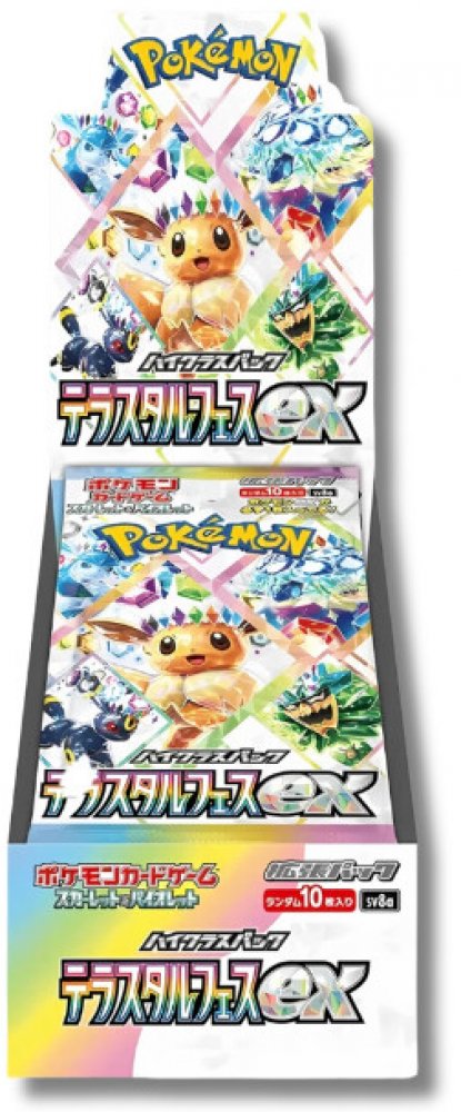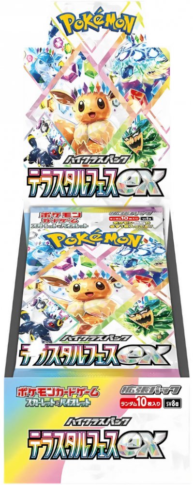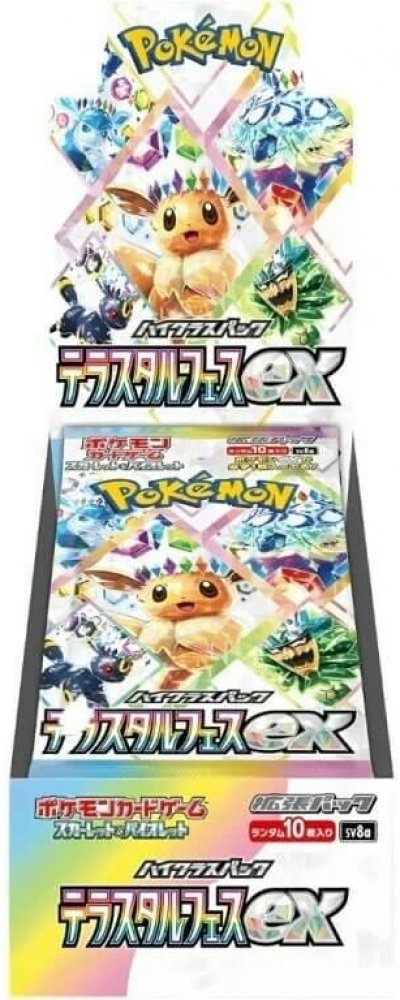 Festival krystalických Pokémonů Terastal Festival EX Booster Box (SV8a) – Japonský je speciální edice Pokémon TCG zaměřená na Terastal Pokémony s jedinečným krystalickým vzhledem. Karty z této sady nabízejí nejen vizuálně atraktivní design, ale i nové strategické možnosti, které mohou zásadně změnit průběh hry.