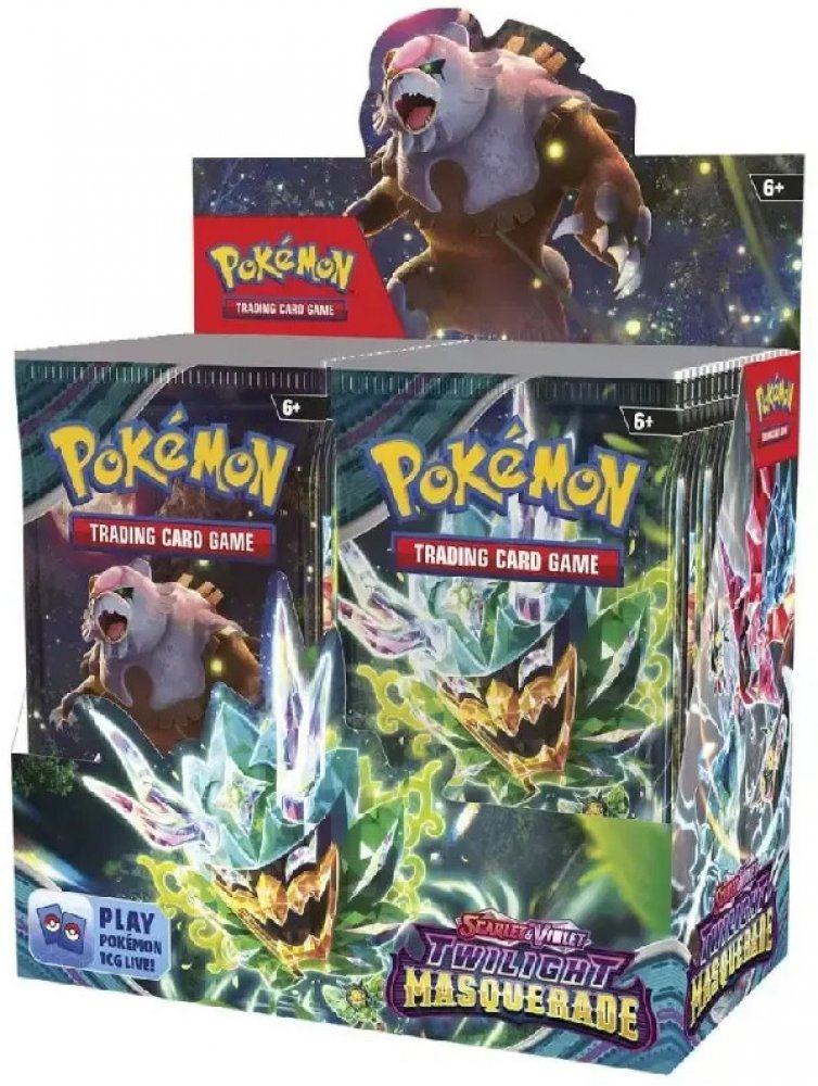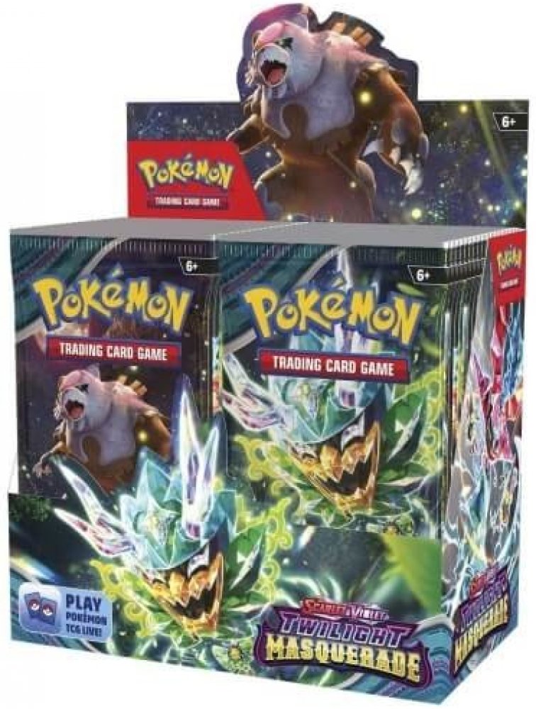 Pokémon edice Twilight Masquerade vychází v květnu 2024. Obsahuje více než 160 karet a 6 ACE SPEC karet. Dočkáme se opět EX Pokémonů a také speciálních type-shifted Tera Pokémonů. Těšit se také můžete na 21 Illustration Rare karet, 6 Hyper Rare zlatých karet či 11 Special Illustration Rare karet. Dále očekáváme 6 Ace Spec karet, 7 Tera Pokémon karty a 7 EX Pokémonů.