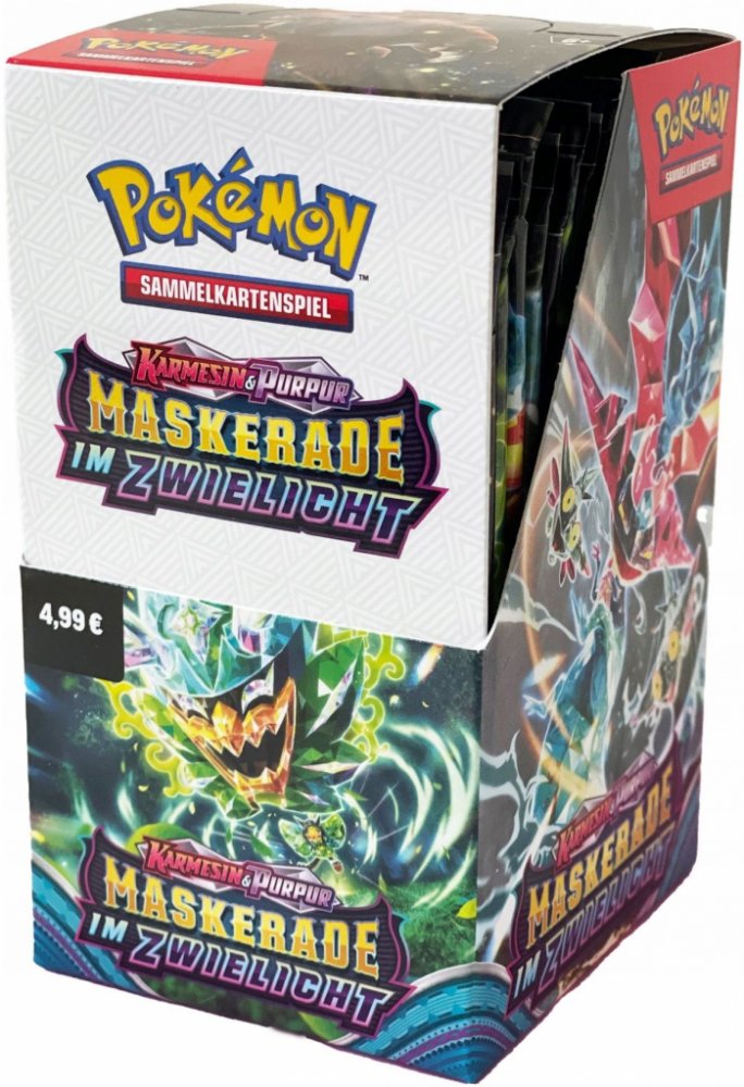 Pokémon Twilight Masquerade Booster Box - 36 booster balíčků 6. edice éry Scarlet and Violet, která otevírá nové příležitosti pro Ancient a Future Pokémony. V edici najdete 167 karet Pokémonů, které byli dříve Secret Rare. Jsou zde opět EX Pokémoni a také speciální type-shifted Pokémoni. Hráči ocení návrat ACE SPEC karet a jejich silné efekty.