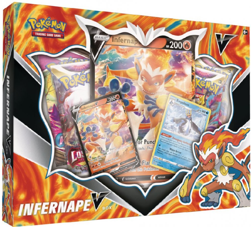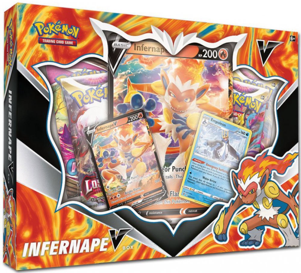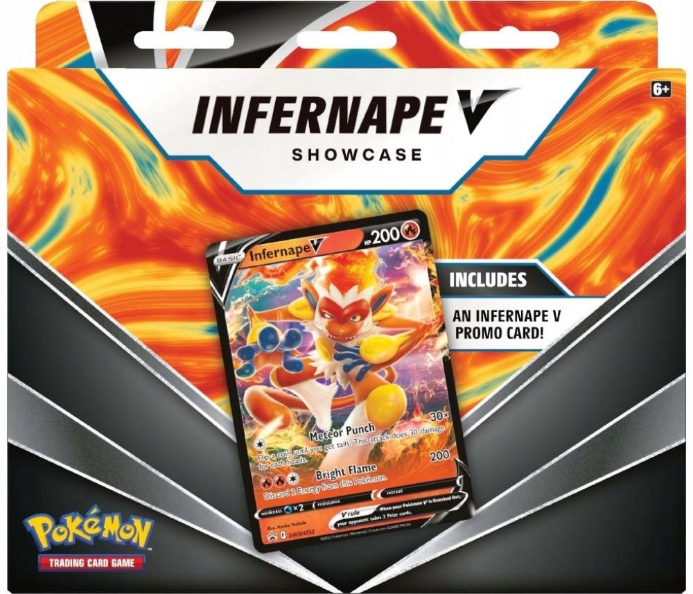 Rozpoutej bitvu s hbitostí a silou Infernape V! Rozpalte svou hru sadou, která oslavuje sílu a vášeň plamenných pokémonů. V této krabici najdete hratelnou a nadrozměrnou verzi Infernape V a navíc bonusovou hratelnou kartu s Empoleonem. Získáte také několik booster balíčků Pokémon TCG, které obohatí vaše balíčky a doplní vaši sbírku.