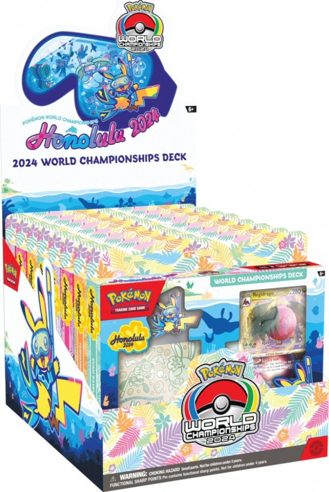 Speciální Championship balíček, který se uplatnil na TCG 2024 World Championships v Honolulu. Kromě samotných kartiček v balení najdete krabičku na karty, booklet, pin, minci, hrací podložku a plakát.