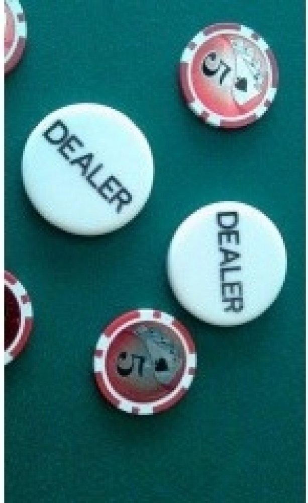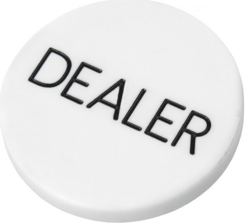 Dealer button: Označuje hráče, od něhož se odvíjí hra (small blind, big blind, kdo začíná sázet a podobně). Velmi důležitý je hlavně, pokud rozdává nehrající hráč (v kasínu placený dealer, při soukromých turnajích například hráč, který již vypadl). Rozdávají-li si hráči sami, rozdává právě hráč označený dealer buttonem.