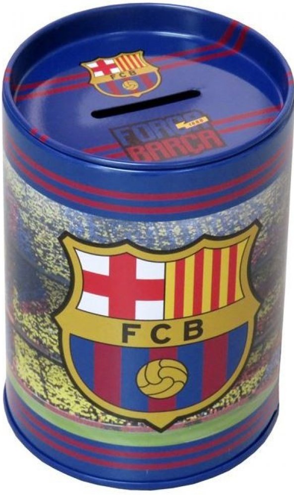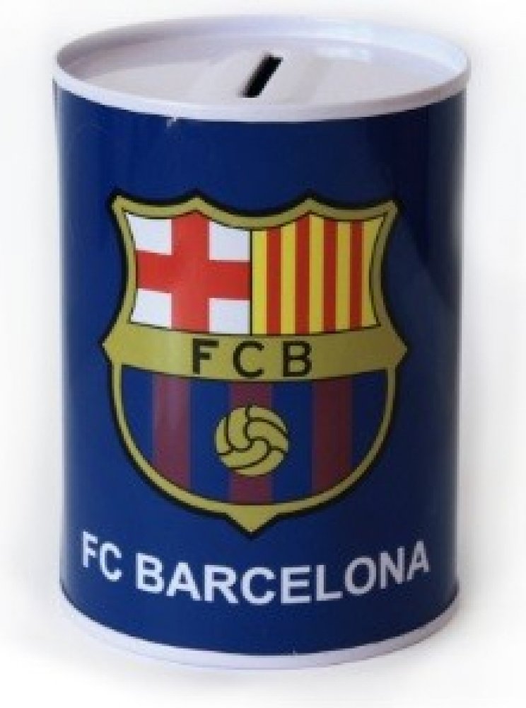 Modrá plechová pokladnička se znakem fotbalového klubu FC Barcelona. Krásný dárek pro malé fotbalisty a fanoušky jednoho z nejlepších týmů histerie FC Barcelony.