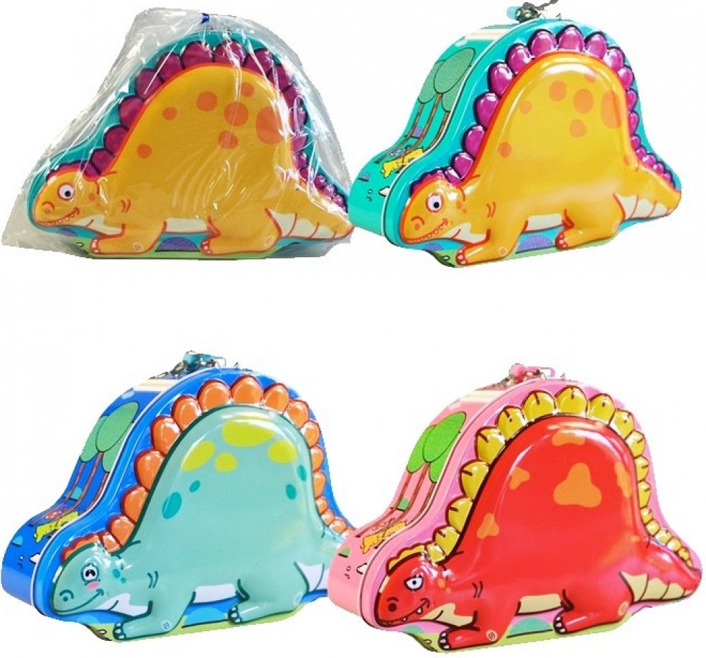 Plechová pokladnička pro děti, ve tvaru dinosaura s plastickým 3D motivem, ve třech variantách provedení. Součástí balení je zámek se dvěma klíčky. Baleno v sáčku.