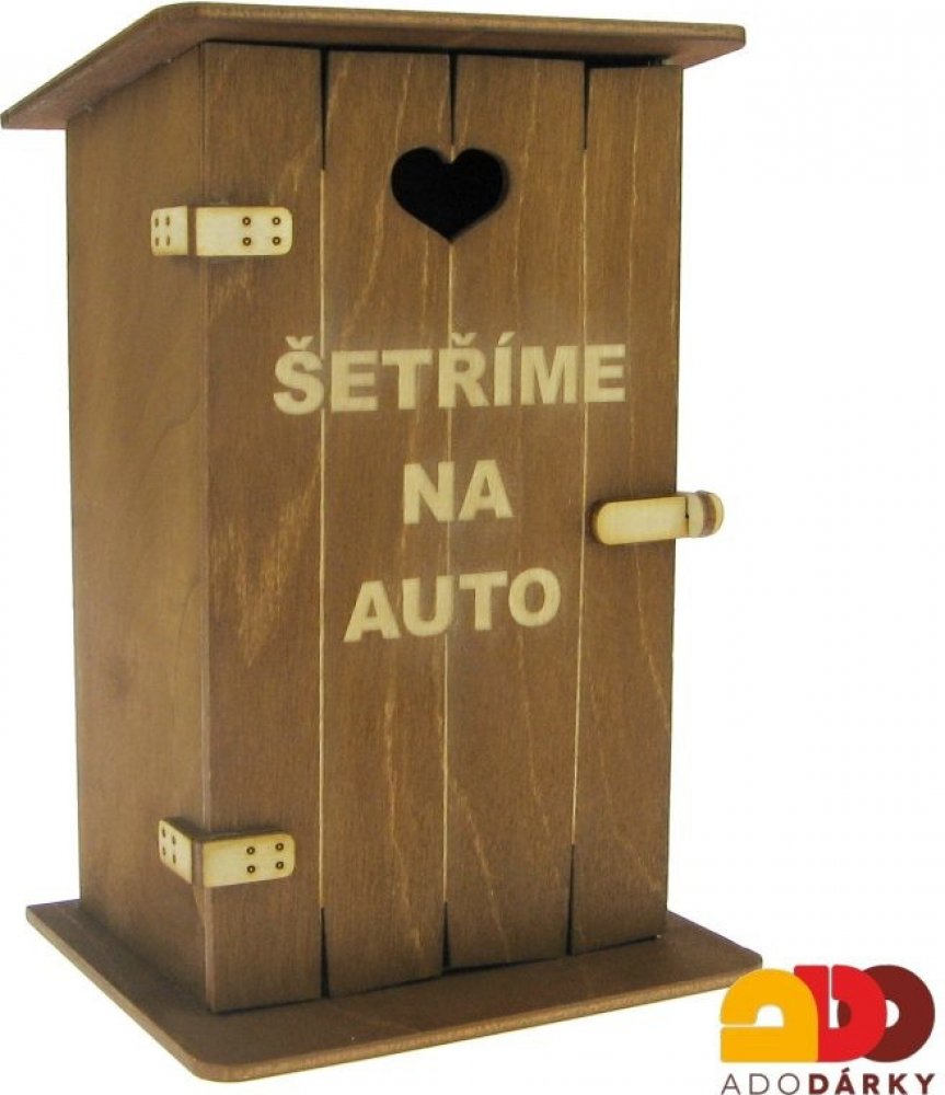 Dřevěná pokladnička ve tvaru kadibudky je skvělým dárkem pro lidi, kteří mají smysl pro humor. Vtipný komentář napovídá, k čemu je možno naspořené peníze použít. Na spodní straně je znovu otevíratelný uzávěr, který dovoluje vybrat finance bez nutnosti rozbíjet pokladničku.