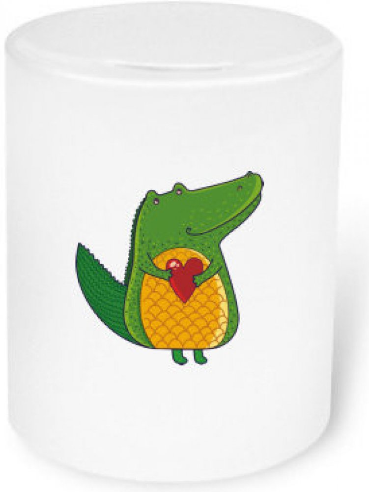 Aby byly vaše dárky ještě roztomilejší a zamilovanější, stačí je doplnit třeba o potisk animovaného krokodýla se srdíčkem. Přidejte vlastní text nebo fotku a krásný dárek je na světě!. Keramická pokladnička do které se bez problémů vejdou všechny mince i papírové bankovky. Ve spodní části je otvor uzavřený plastovým uzávěrem, který slouží pro vyprázdnění pokladničky. Celková výška je 95mm a průměr 82mm.