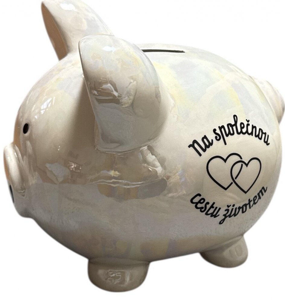 Tahle roztomilá kasička ve tvaru prasátka s nápisem „Na společnou cestu životem“ je dokonalým symbolem vašich společných plánů a snů.