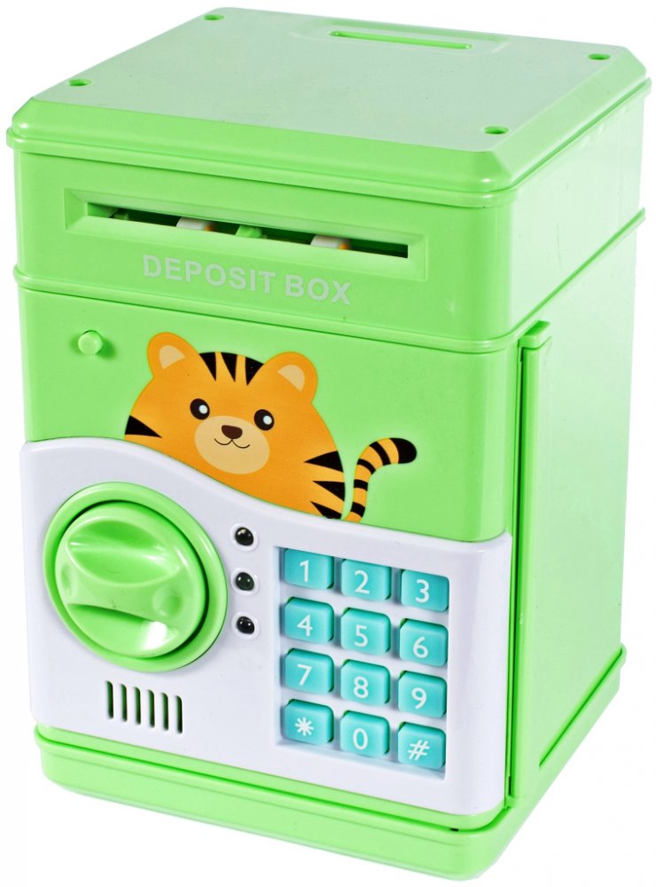 Roztomilá pokladnička ve tvaru sejfu s motivem kočičky v zelené barvě potěší děti i dospělé. Po přiložení bankovky se bankovka automaticky vtáhne a sejf přehraje jednu ze 7 melodií. Ideální pro zábavné ukládání úspor a učení dětí finanční gramotnosti.Objevte zábavný způsob, jak motivovat děti k šetření. Tato stylová a bezpečná pokladnička v designu sejfu s motivem kočičky zelené barvy nabízí autom...
