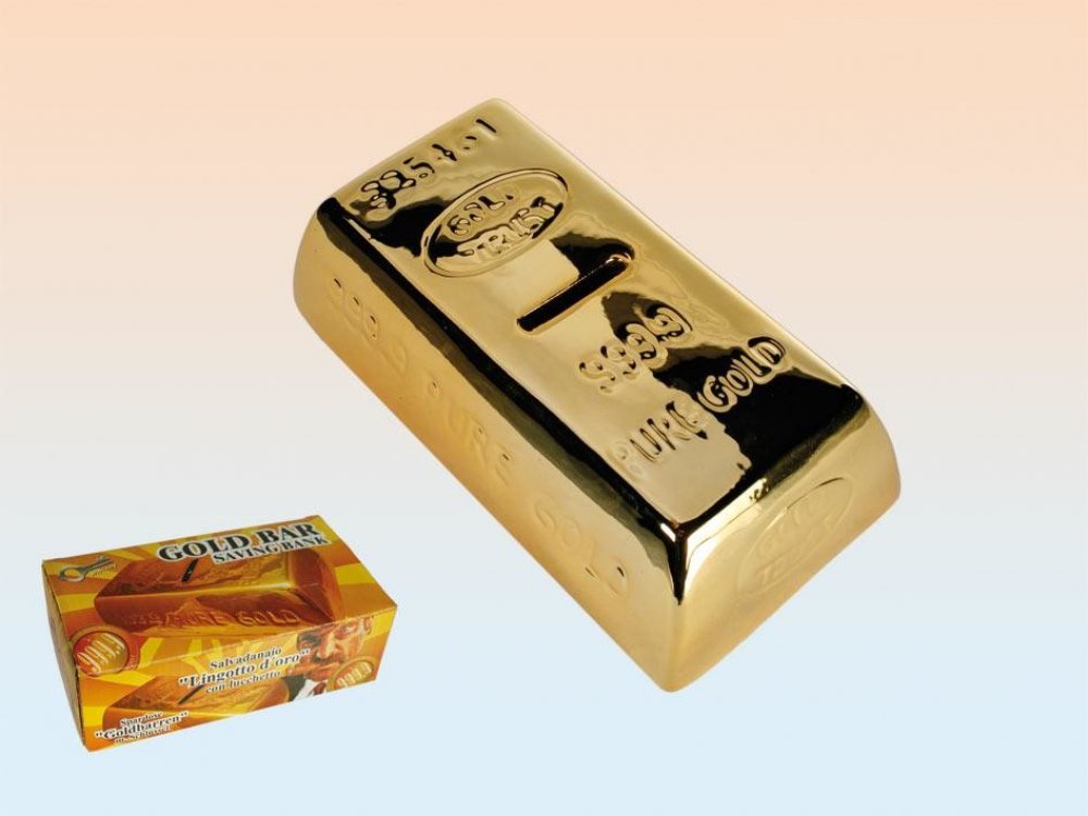 Chcete šetřit a přitom mít originální kasičku? Pak je pro vás tato keramická zlatá cihla tím pravým. Jistě vás bude inspirovat k velkému spoření.