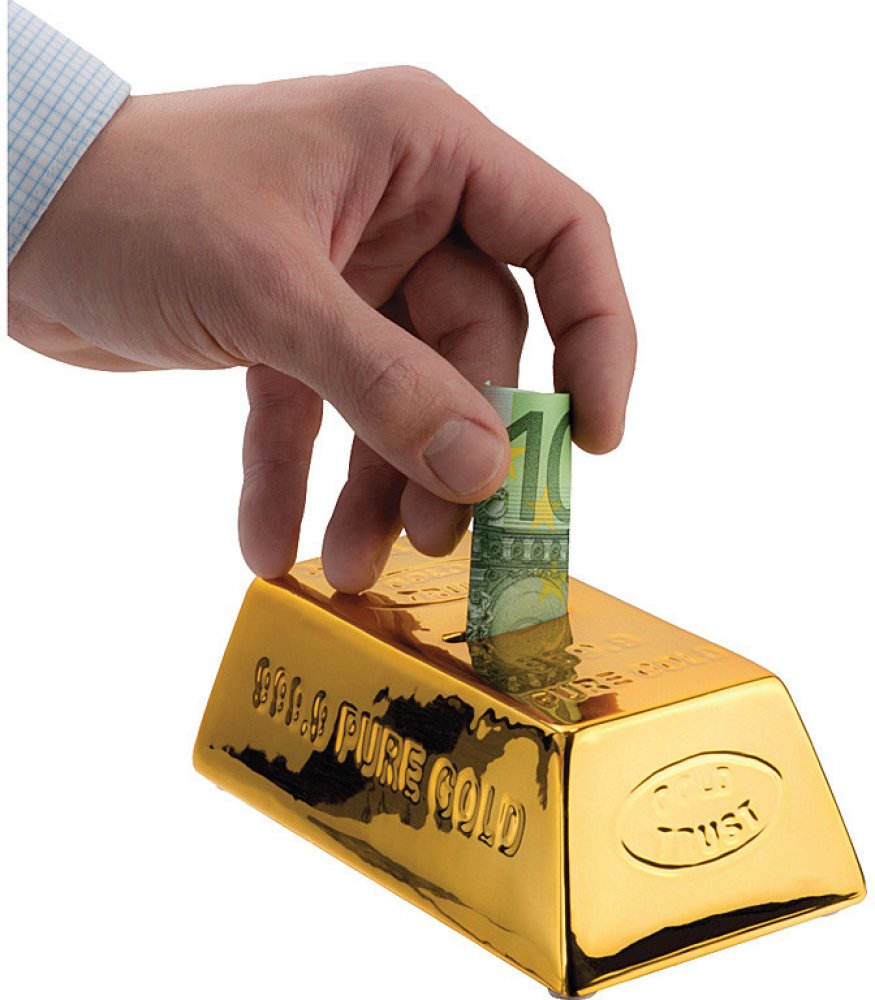 Kdo by si nechtěl za ušetřené peníze pořídit třeba zrovna takovou zlatou cihlu. Vhazovat peníze můžete otvorem na vrchní části a vybírat pomocí klíčku, který je součástí balení.