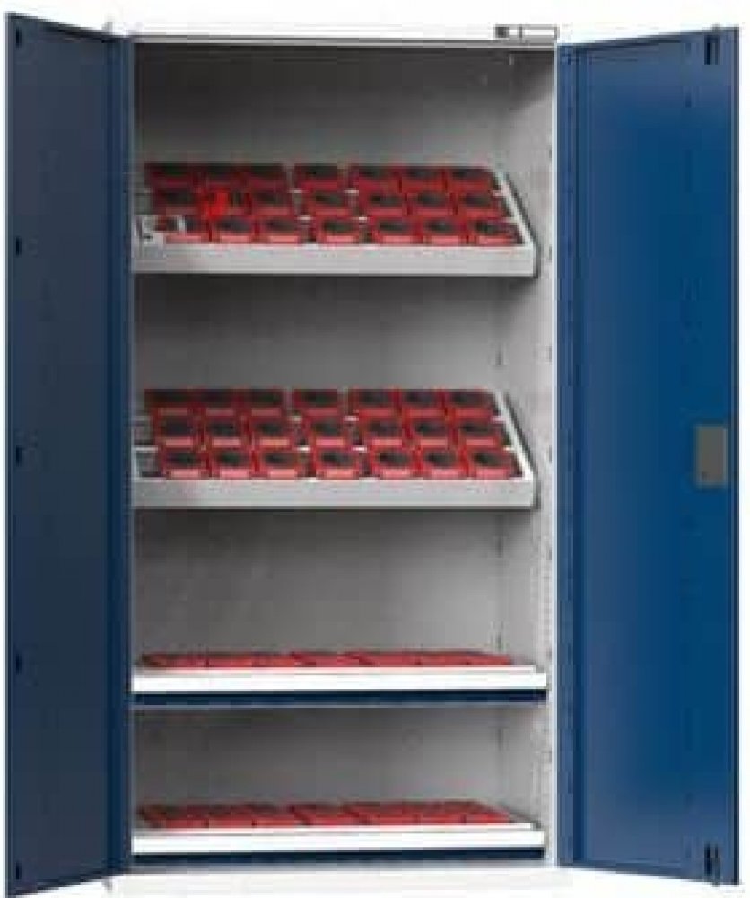 NC skříně jsou opatřeny dvojitými stěnami s perforací pro zavěšení polic, nosičů, nástrojových rámů a zásuvek. V případě vybavení skříne zásuvkami je standardně, z důvodu bezpečnosti (nebezpečí převrácení), dodávána blokace proti vysunutí více zásuvek. Korpus skříně se uzavírá křídlovými dveřmi s panty otočnými o 180°. Zamykání cylindrickým rozvorovým zámkem. Standardní výbavou je systém identifik...