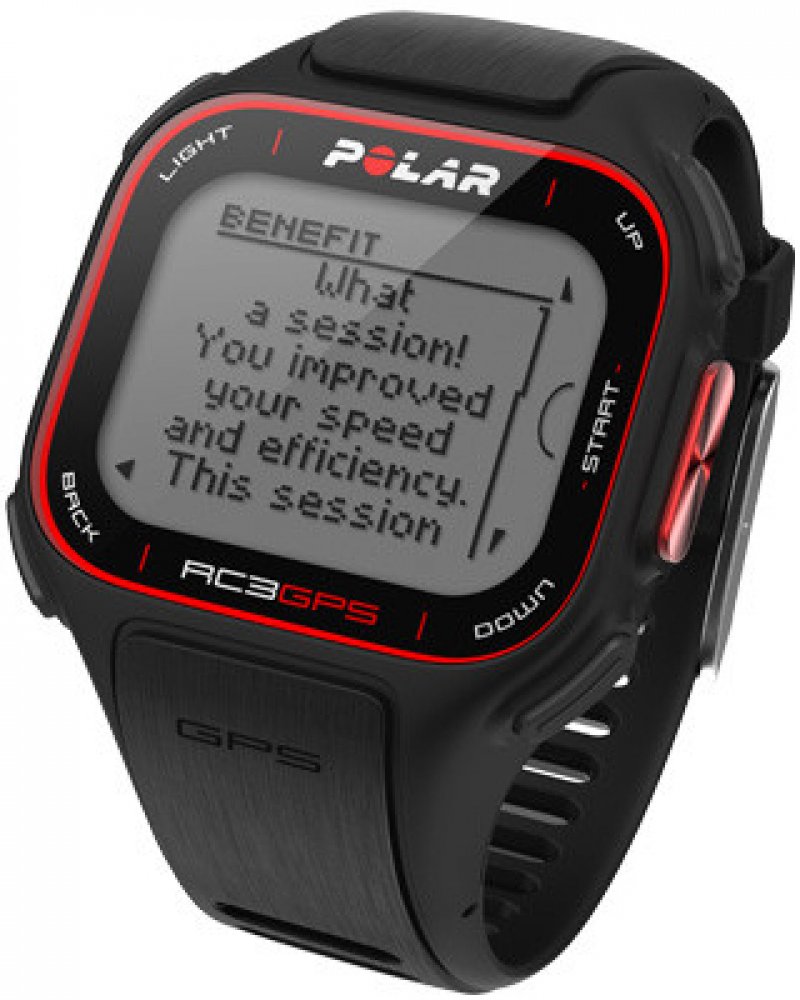 Hledali jste značkové hodinky se zabudovanou GPS? Polar přináší RC3 GPS s integrovanou GPS a možností rozšíření na sporttester. RC3 jsou hodinky s velkým přehledným displejem a zabudovanou GPS za cenu srovnatelnou s neznačkovými hodinkami. Přitom hodinky umožňují funkce, které jinde nenajdete. Po doplnění o hrudní pás se z nich stane vysoce vybavený sporttester, Polar přináší nejrychlejší integrovanou GPS technologii v kombinaci s inteligentním Polar Coaching jedinečný a individuální přístup k tepové frekvence na bázi tréninku. Supertenké hodinky RC3 s šířkou pouhých 13,7 mm váží pouhých 58 gramů a díky tomu můžete dělat vše, co byste očekávali od špičkového sporttesteru. Sledujte vaší rychlost, vzdálenost a trasu, která může trvat až 12 hodin na jedno nabití baterie, stejně jako připojit můžete i snímač kadence a krokoměr. Ale to co RC3 GPS opravdu odlišuje, je řada inteligentních funkcí jako například koučování, poskytování zpětné vazby o svém postupu ihned po cvičení, aby jste trénovali správnou intenzitou. Další nová GPS funkce je Zpět na Start, po stisknutí tlačítka vám dává směr zpět do výchozího bodu. Integrovaná GPS Vestavěná GPS sleduje vaši rychlost a vzdálenost Školení Benefit Motivující zpětnou vazbu ihned po cvičení Web Training Diary Podělte se o své trasy a vzdálenost přes polarpersonaltrainer.com Běh Index Sledujte svůj provozní výkon, rostoucí index znamená, že běžíte efektivněji GPS Výškoměr Nejedná se o barometrický výškoměr, proto může být chyba měření vyšší, než u barometrického výškoměru Balení obsahuje: # Polar sporttester RC3 GPS černý # USB kabel # Tato verze je rozšířena o výškoměr na bázi GPS # RC3 GPS Uživatelská příručka