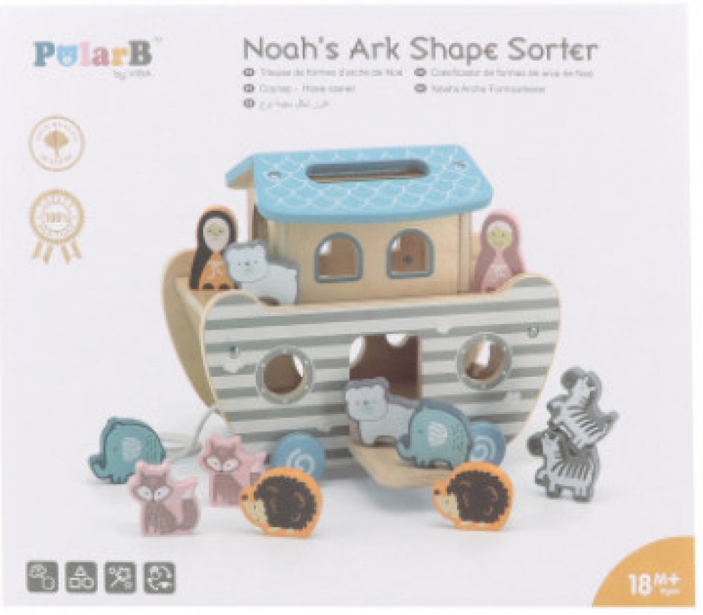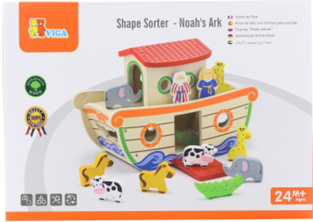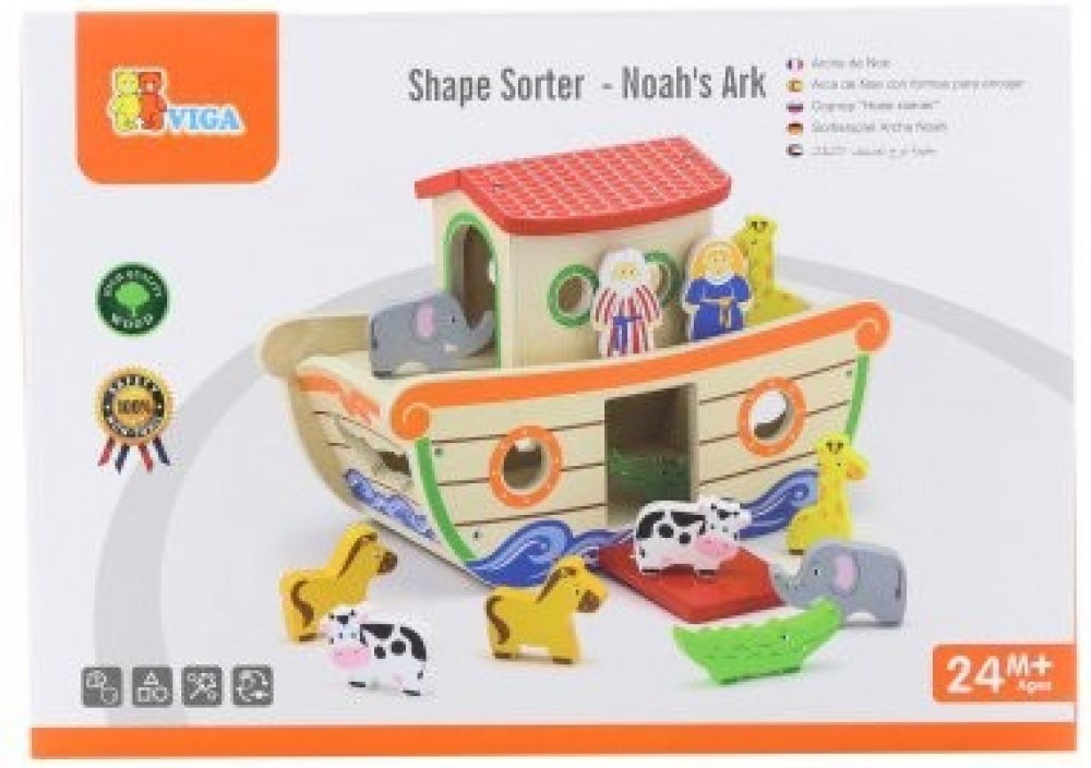 Hračka se skládá z figurek Noeho a jeho ženy, 5 dvojic zvířátek (slonů, lišek, ježků, zeber a ledních medvědů) a lodi na kolečkách s přiloženým provázkem na tahání. Ve střeše archy je vyříznuta rukojeť pro zvedání a na boční straně jsou otevírací dvířka.