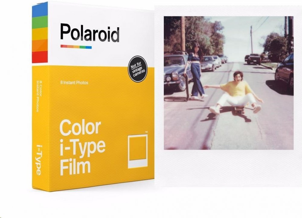 Osm instantních barevných fotografií s bílými rámecky. Pro použití pro fotoaparáty Polaroid i-Type. Fotografie se zacne objevovat behem 2 minut. Celý vývoj trvá asi 10-15 minut. Film i-Type je optimalizován pro kamery typu I. Je levnejší než standardní film 600, protože neobsahuje baterie. Film i-Type využívá nejnovejší barevnou chemii k produkci fotografií s bohatými, dobre vyváženými tóny a temito jemnými texturami, díky nimž je analogová fotografie tak výrazná. Ikonický styl bílého rámecku je dnes už legendární.