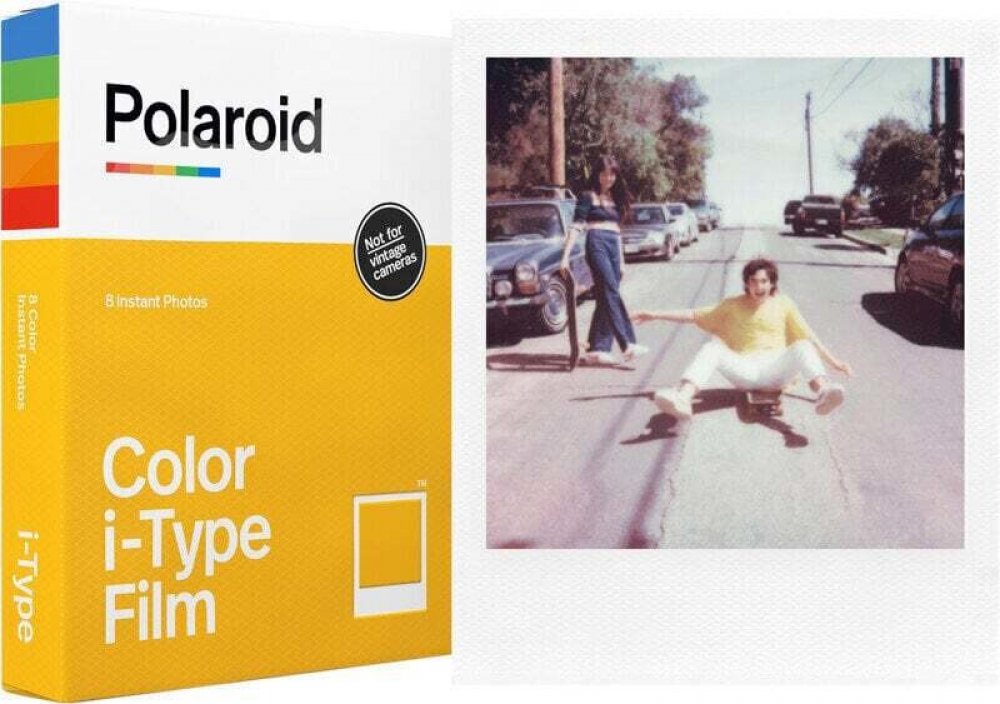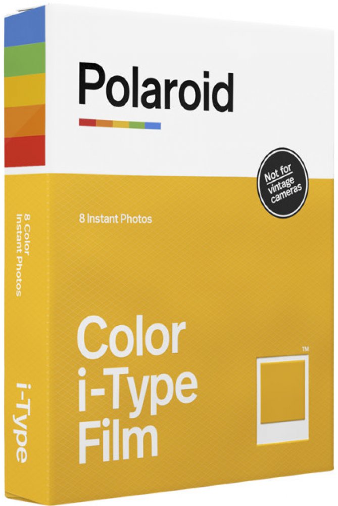 Osm instantních barevných fotografií s bílými rámečky. Pro použití pro fotoaparáty Polaroid i-Type. Fotografie se začne objevovat během 2 minut. Celý vývoj trvá asi 10-15 minut. Film i-Type je optimalizován pro kamery typu I. Je levnější než standardní film 600, protože neobsahuje baterie. Film i-Type využívá nejnovější barevnou chemii k produkci fotografií s bohatými, dobře vyváženými tóny a těmito jemnými texturami, díky nimž je analogová fotografie tak výrazná. Ikonický styl bílého rámečku je dnes už legendární.