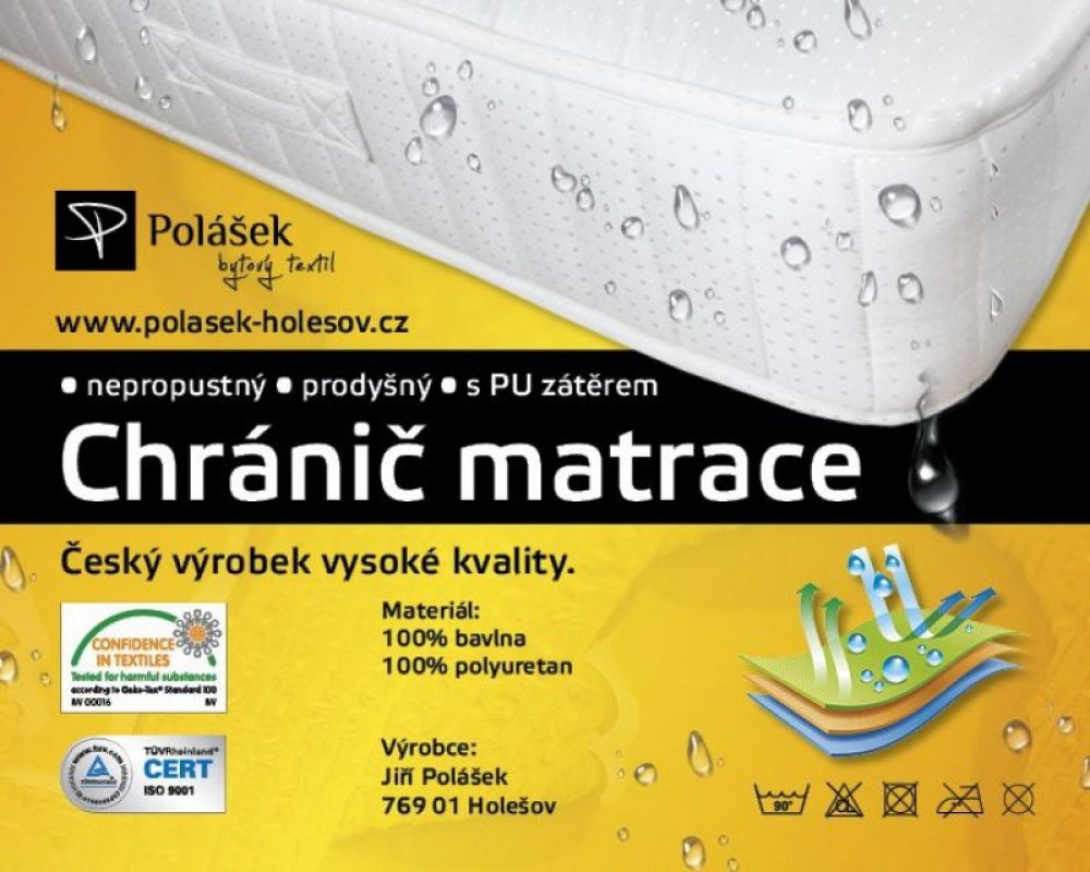 PU chránič jersey bílá Tyto prostěradla mají širokou škálu využití. Jsou vhodná pro dlouhodobě ležící, do dětských postýlek, ale také pro všední využití. Lehací část tvoří polyuretanový zátěr, který je nepropustný, ale zároveň prodyšný! Díky tomu dokonale ochrání vaši matraci a nedochází zadržování vlhkosti. Povrch prostěradla tvoří jersey s gumou v rozích. Možnost praní až na 90°C. Možnost atypic...