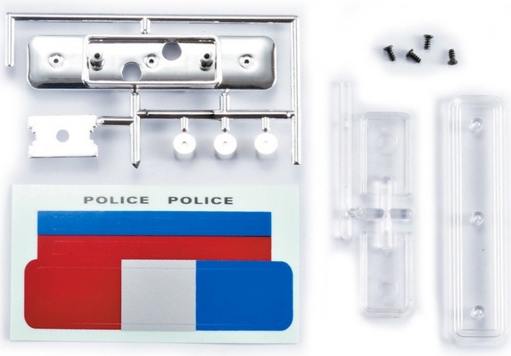 Balení obsahuje: policejní maják ( nutno sestavit ), samolepky, montážní příslušenství, obrázkový návod.