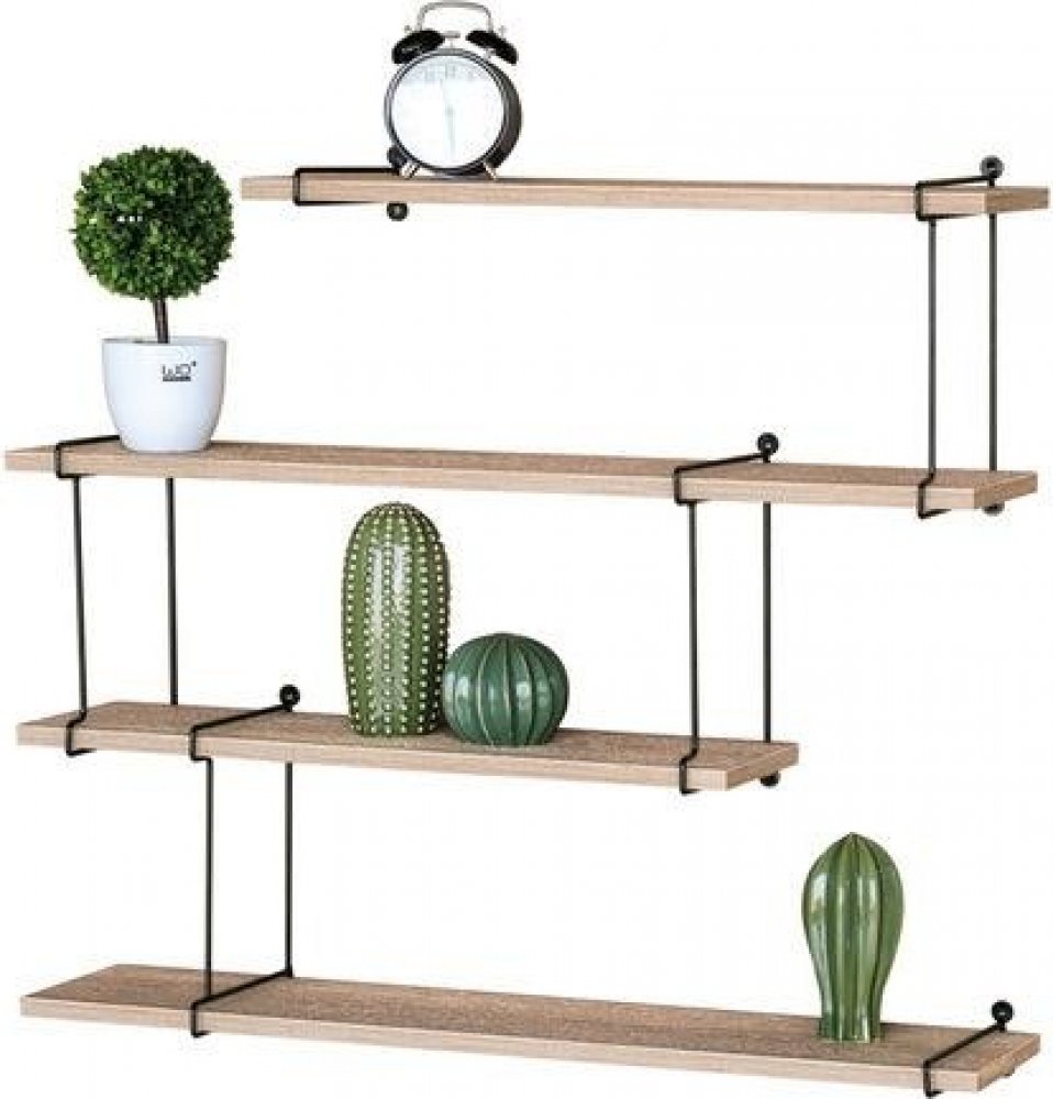 Poličky nástěnné 80 cm, MDF, dub, kov černý mat Autronic (P-065 OAK)