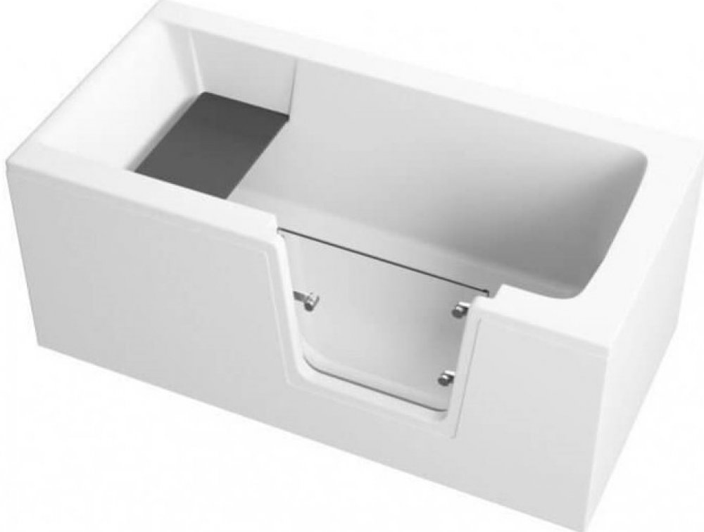 Obdélníková vana s dvířky nejvyšší kvality, rychlý ohřev, udržování teploty vody. Odnímatelné sedátko zvyšuje komfort používání akrylátové vany. Těsnící boční dvířka usnadňují samostatné používání obdélníkové vany při koupání starším a zdravotně postiženým osobám. - délka: 140 cm - šířka: 70 cm - hloubka: 46 cm - materiál: akrylát - bez horního přepadu - objem: cca 140 litrů - typ dna: hladké - průměr odtoku: 5 cm - rám je součástí dodávky - barva: bílá Pozor! Kryt se prodává samostatně. Při objednání akrylátové vany s dvířky a čelním panelem je panel ve fázi výroby napevno připevněn k vaně. K dříve zakoupené vaně není možné panel přidat. Panely se vybírají jednotlivě pro sadu (panel lze zakoupit pouze při nákupu vany). Pro vanu s dvířky lze použít panel a boční panel nebo dva boční panely. Není možné připravit vanu uzavřenou ze čtyř stran. Tento model obdélníkové vany nemá horní přepad!
