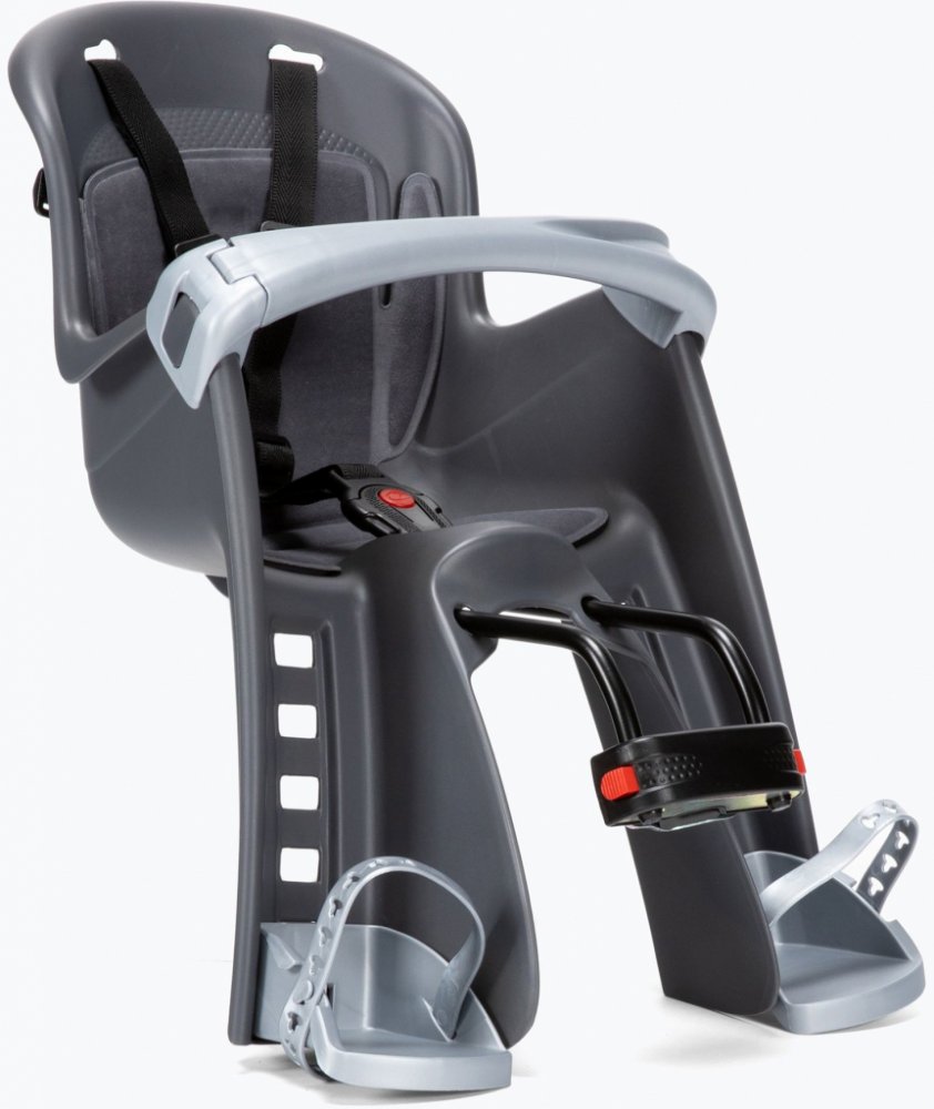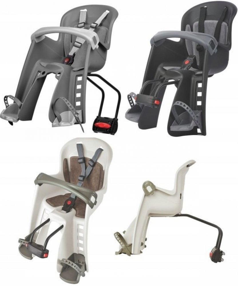 Dětská přední cyklo sedačka na kolo s uchycením na přední rámovou trubku nebo představec průměru 22 až 40mm, hrazdička, tříbodový pás, nosnost 15 kg. Uchycení se nehodí pro většinu moderních jízdních kol, doporučujeme sedačku Bilby se zadním úchytem Dětská sedačka na kolo Polisport Bilby Junior přední s uchycením vpředu