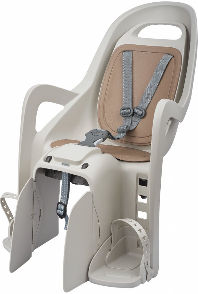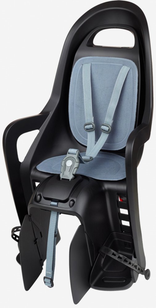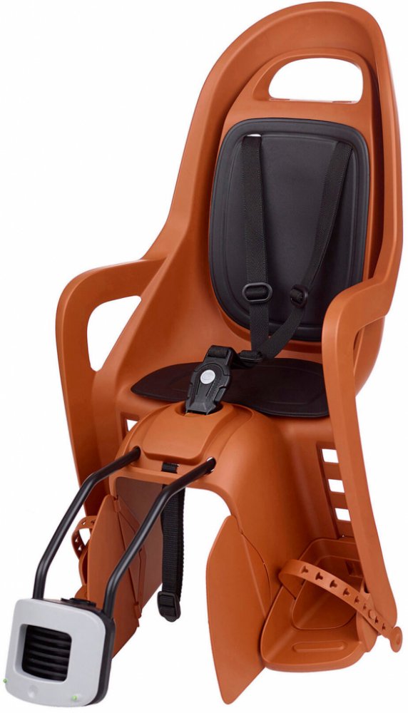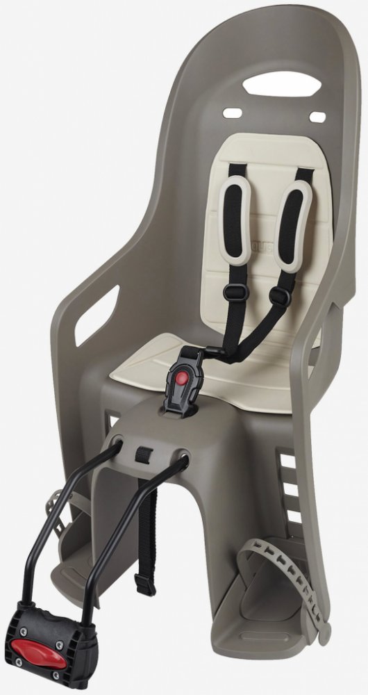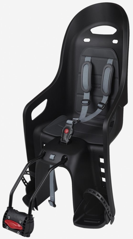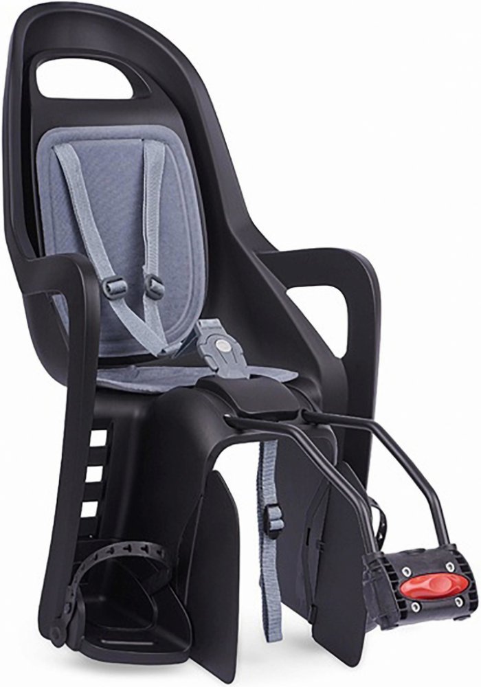 Pohodlná a omyvatelná sedačka. |Snadno se instaluje i odepíná z kola, umožňuje každodenní montáž. Montáž na nosič nevyžaduje žádné nářadí. Stačí pouze dotáhnout, či povolit tlačítko základny a sedačka je připravena na jízdu, či uskladnění.