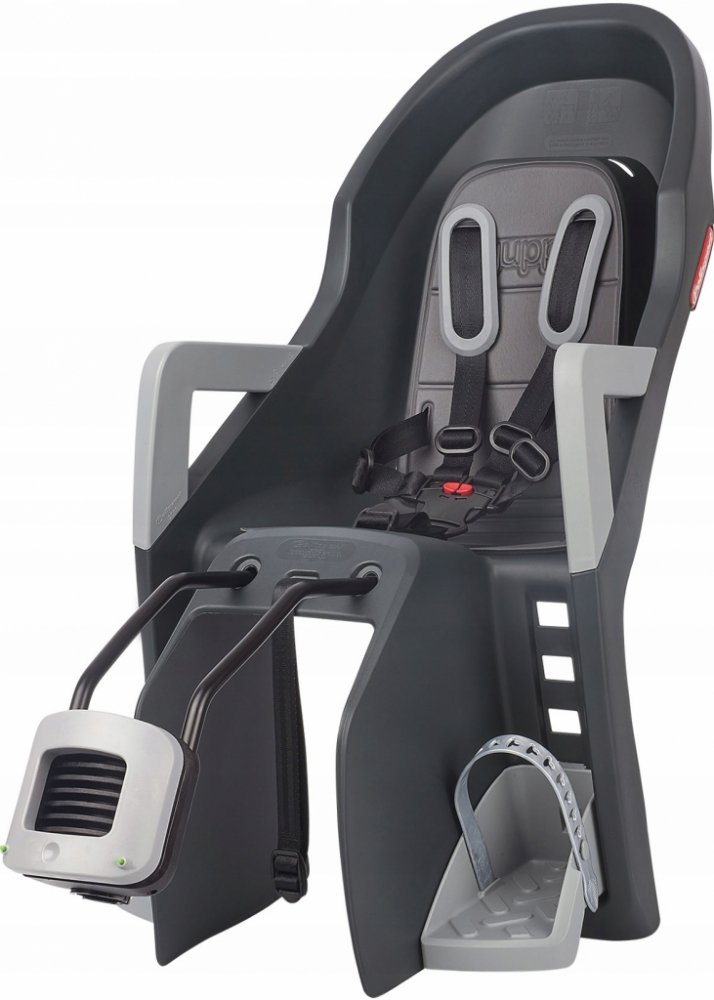 Sedačka Polisport - popis: samonosná sedačka, podélně posuvná, pětibodový pás, montáž na sedlovou trubku kruhového i oválného průměru 28 až 40mm, pro děti do hmotnosti 22kg. Úložný prostor na zádech sedačky opatřený síťkou.Nastavitelné stupačky ve čtyřech polohách, hmotnost sedačky 3,81 kg, dodávané samozřejmě včetně držáku.
