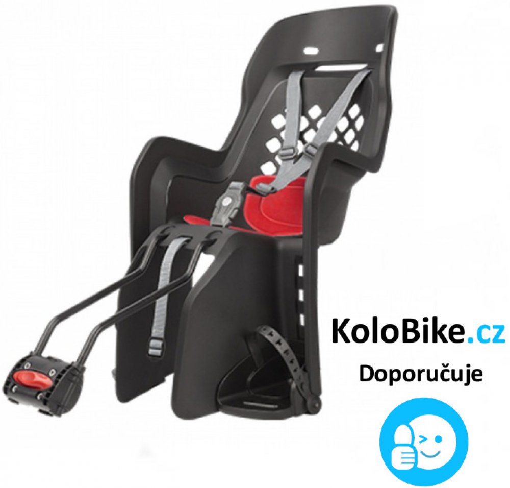 Součástí sedačky je i držák pro uchycení na rám, sedačky Polisport nejsou určeny na montáž karbonových a celoodpružených rámů.