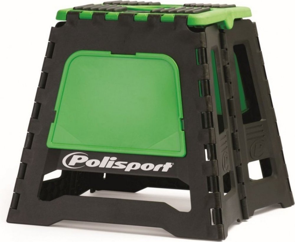 Skládací stojan Polisport používají profesionální týmy a je také oficiálním stojanem podia FIM Světového šampionátu. Žádný jiný stojan nenabízí takovou kombinaci nízké hmotnosti, praktičnosti a odolnosti. Vlastnosti: Nosnost: až 250 kg Skládací design Dvojitý materiál: polypropylene a guma Šetří místo Nízká hmotnost Oficiální stojan FIM Světového šampionátu Hmotnost: 4300 g Rozměry rozloženého stojanu: 300 mm x 420 mm x 450 mm Rozměry složeného stojanu: 600 mm x 50 mm