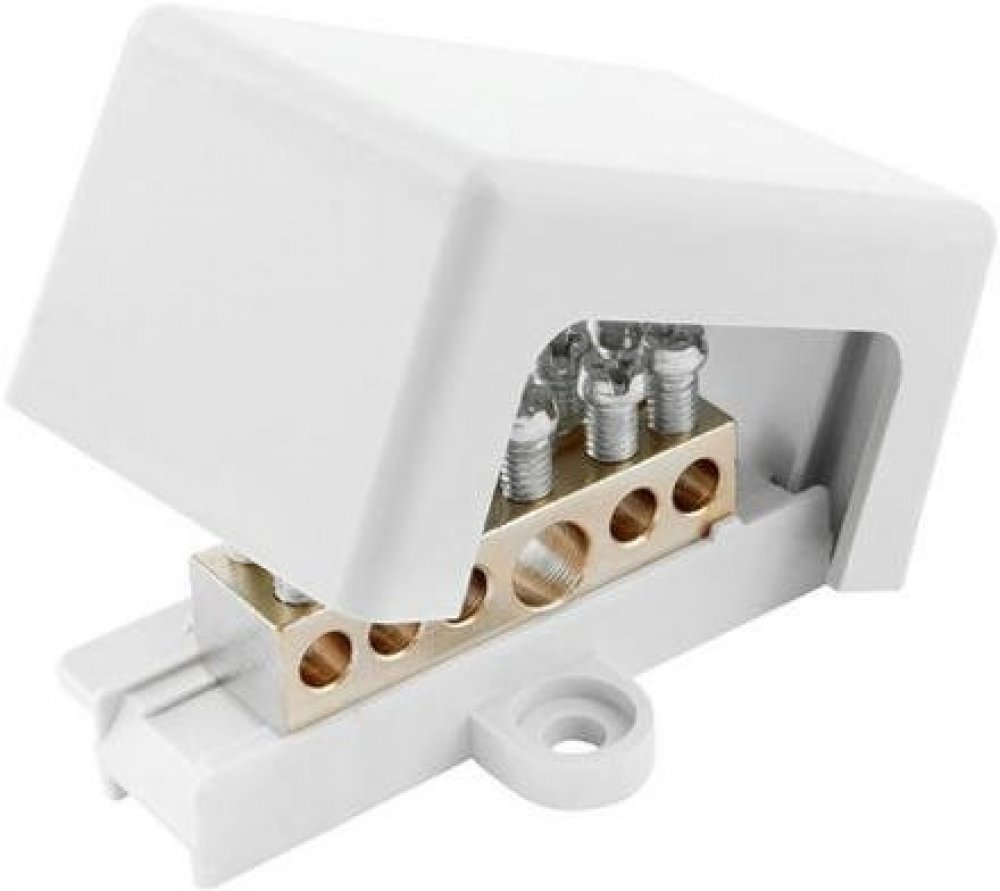 Svorkovnice uzemňovací krytá svorka, 2-řadá. 1x vodič 6-25mm2, 5x vodič 1,5-6mm2, rozměry 31x64x41mm. Je určena pro použití v domovních i průmyslových rozvodech jako přípojnice potenciálového vyrovnání. Svorkovnice lze upevnit pomocí šroubů.