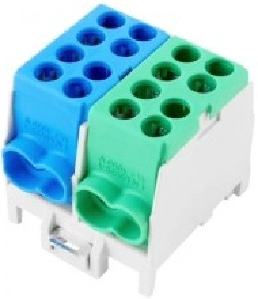 Svorkovnice rozbočovací HLAK 25 2/4 S GN/BL, 100A, 2pól., AL/CU, IP20, modrá+zelená, na DIN.Univerzální rozbočovací (smyčkovací) svorkovnice HLAK typ M2 mohou být použity v rozváděčích nízkého napětí či v dalších aplikacích, kde potřebujeme připojit vstupní kabel a kabel(y) výstupní (smyčkování) a zároveň připojit k napájení přístroje osazeného uvnitř rozváděče. Speciální povrchová úprava svorky umožňuje připojení jak měděných tak hliníkových vodičů. Svorky jsou určeny pro montáž na nosnou lištu (DIN) a jsou řaditelné do sebe. Vodiče se do svorek po odizolování připevňují pomocí šroubového spojení. Šroub dosedá přímo na vodič, proto je nutné jemně slaněné vodiče opatřit dutinkou. Dutinka ale zvětší průřez vodiče a proto je nutné připojovat slaněné vodiče o řád menší než uvedené průřezy. U pevných vodičů toto není nutné.Hlavní přednosti:• Montáž na nosnou lištu• Ui až 1000 V AC/DC (ČSN EN 60998-1 ed. 2)• Menší rozměry oproti klasickým rozbočovacím svorkám• Krytí IP20• Připojení měděných i hliníkových vodičů• Řaditelné do sebe• Široká nabídka typů a provedení• Barevné odlišení fází, nulového a ochranného vodiče