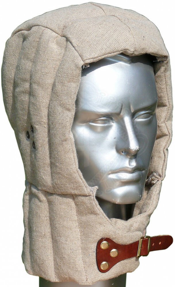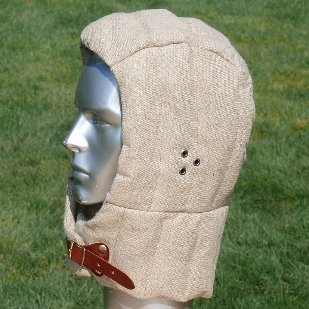 Polstrovaná kukla do helmice vč. chrániče krku Polstrovaná kukla do helmice vč. chrániče krkuKukla do helmice je ušitá ze lnu, prošívaná a silně polstrovaná. Pod bradou se uvazuje pomocí řemínku na přezku.