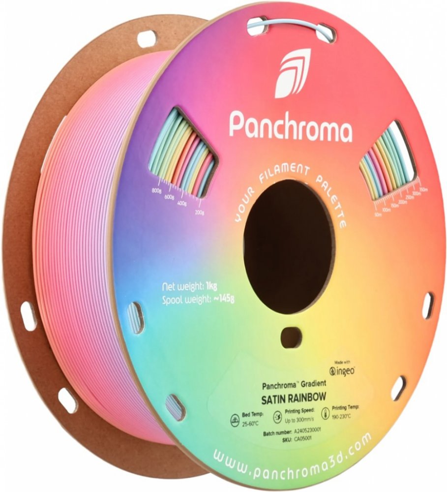 Vlastnosti a výhodyDuhový efektPlynulé přechodySaténový vzhledBez viditelných vrstevDíky okouzlujícímu duhovému efektu je PolymakerPanchroma™ PLA Gradient Satin Rainbow od Polymakerudodá každému projektu výrazný nádech! Jemné barevné kombinace a plynulé přechody mezi barvami vytvářejí úžasný saténový vzhled, který se třpytí v jasném i tlumeném světle. Plynulé barvy vybízejí ke hře se světelnými ef...