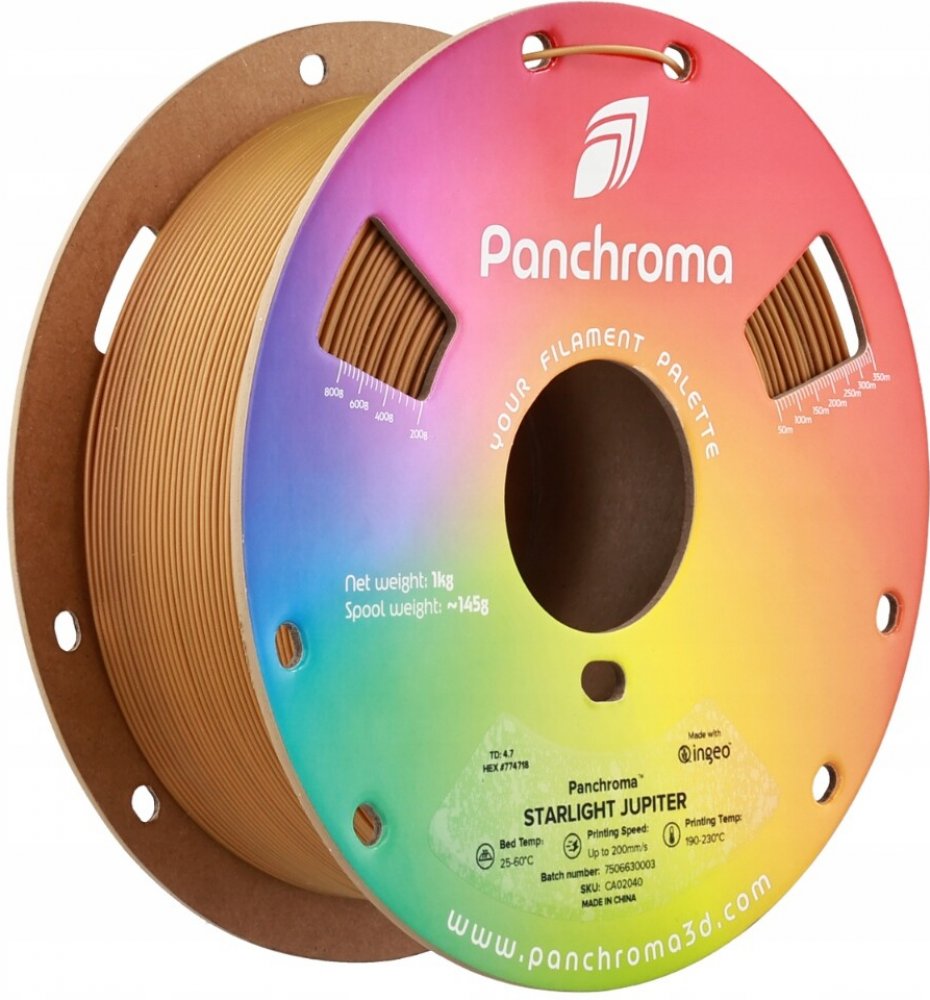 Třpyt hvězd na JupiteruVlastnosti a výhodyVzhled světla hvězdJedinečný lesklý efektZměna barvy v závislosti na dopadu světlaSnadné zpracováníAť vaše 3D výtisky září jako nikdy předtím! SPanchroma™ Starlight PLA od Polymakerumůžete na svých výtvorech vykouzlit jedinečný třpytivý efekt, který mění barvu v závislosti na dopadu světla. Tento fascinující efekt promění každý model v opravdovou pastvu pro oči a dodá vašim modelům dynamiku - jako třpytivé hvězdy tančící na noční obloze.Ať už se jedná o umělecké projekty, dekorativní prvky nebo dechberoucí zvýraznění -Panchroma™ Starlight PLAzajistí, že se vaše nápady dostanou do centra pozornosti!Značka (výrobce):PolymakerObsah:1 000 gPrůměr:1,75 mmProduktová řada:PanchromaTypy produktů:PLA filamentBarva:VícebarevnéKompatibilita: Bambu Lab AMS*Systém:CívkaDoporučená teplota tisku:190 - 230 °CDoporučená teplota tepelného lože: 25 - 60 °CPotřebujete více informací o tomto produktu?-Produktový list-Bezpečnostní list
