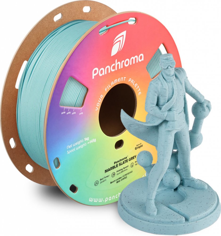 Vlastnosti a výhodyJedinečný vzhled kameneVynikající přilnavost fólieSnadné zpracováníIdeální pro umělecké projektyPanchroma™ PLA Marble Slate Grey: přírodní krása při 3D tiskuObjevte Panchroma™ PLA Marble Slate Grey od společnosti Polymaker, jedinečný filament pro 3D tiskárny, který kombinuje pevnost PLA s přirozeným vzhledem mramoru. Tento ekologický filament, dříve známý jako PolyTerra™ PLA Marble, je obohacen o organické minerály, čímž se spotřeba plastů.Výhody filamentu Panchroma™ PLA Marble Slate Grey:Realistický vzhled mramoru: Vytvářejte 3D výtisky s úžasně přirozenou strukturou mramoru. Matný povrch maskuje linie vrstev pro hladký a profesionální výsledek.Snadný tisk: Panchroma™ PLA Marble Slate Grey se tiskne stejně snadno jako standardní PLA. Podpěry se snadno odstraňují.Vyšší odolnost: Pevnější a tužší než běžný PLA, ideální pro funkční prototypy a odolné předměty.Šetrné k životnímu prostředí: Vyrobeno z recyklovaných cívek a za každou prodanou cívku vysadí Polymaker jeden strom.Všestranné použití: Polymer je vhodný pro výrobu plastů z polyakrylátu: Ideální pro dekorativní předměty, figurky, hračky a vizuální prototypy.Použití: Polymaker je vhodný pro výrobu plastů z polymerových hmot:Vytvářejte elegantní interiérové dekorace s jedinečným mramorovým vzhledem.Tiskněte detailní figurky a hračky, které vydrží nápor.Vytvářejte profesionální vizuální prototypy s hladkým, matným povrchem.Nastavení tisku:Teplota vytlačování: 190 °C - 230 °CTeplota lože: 25 °C - 60 °CRychlost tisku: maximálně 200 mm/s (optimálně 30 mm/s - 70 mm/s)Poznámka: Vzhledem k abrazivním vlastnostem materiálu se pro častý tisk doporučuje použít trysku z tvrzené oceli.Další informace o tomto produktuuct?-Produktový list-Bezpečnostní list