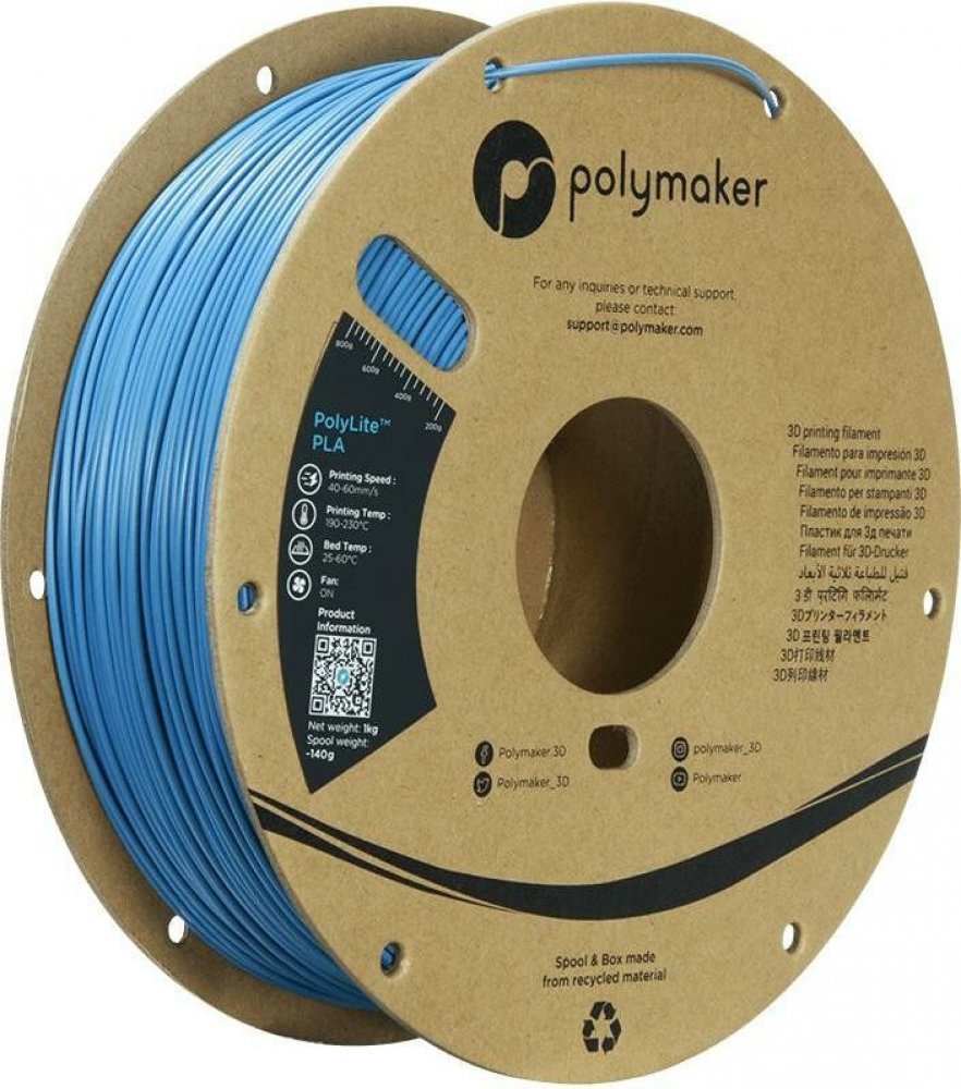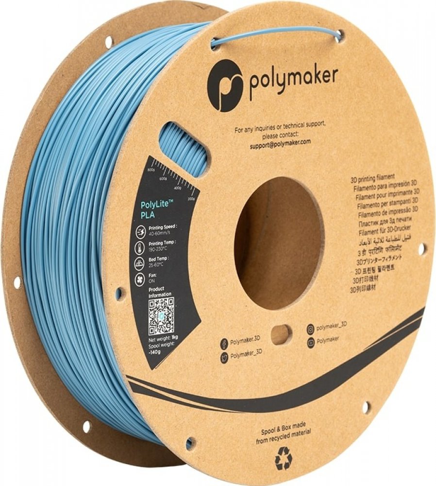 PolyLite™ PLA je vysoce kvalitní PLA navržený pro spolehlivý a snadný tisk. PolyLite™ PLA je založen na vysokomolekulárním PLA od společnosti Natureworks, což z něj činí jeden z nejtužších materiálů PLA na trhu Nejdůležitější vlastnosti: Zaručená kvalita PolymakerŠiroká škála dostupných barevSnadný tisk PolyLitePolyLite™ je řada 3D tiskových vláken vyrobených z nejkvalitnějších surovin, které poskytují výjimečnou kvalitu a spolehlivost. PolyLite™ zahrnuje nejoblíbenější materiály pro 3D tisk, které splňují vaše každodenní potřeby v oblasti designu a prototypování.Technologie Polymaker Jam-Free™Technologie Polymaker Jam-Free™ zvyšuje tepelnou odolnost samotného filamentu (nikoliv tištěného dílu) až na 140˚C. Tím se zabrání zasekávání v důsledku teplo-plazivosti. Tepelné tečení je proces, při kterém se teplo nepravidelně šíří horkým koncem, změkčuje filament před vstupem do tavicí komory a zasekává filament při jeho rozpínání ve studeném konci. Zvýšení tepelné odolnosti filamentu z 60˚C na 140˚C zajišťuje, že se nezasekává.PolyLite PLAPolyLite™ PLA je vysoce kvalitní PLA navržený pro spolehlivost a snadný tisk. PolyLite™ PLA je založen na PLA s vysokou molekulovou hmotností od společnosti Natureworks, což z něj činí jeden z nejtužších materiálů PLA na trhu.Doporučená nastaveníTeplota trysky: 190˚C - 230˚CRychlost tisku: 40 mm/s - 60 mm/sTeplota lože: 25˚C - 60˚CPovrch lůžka: Sklo s lepidlem, modrá páska, BuilTak®.Chladicí ventilátor: zapnutý
