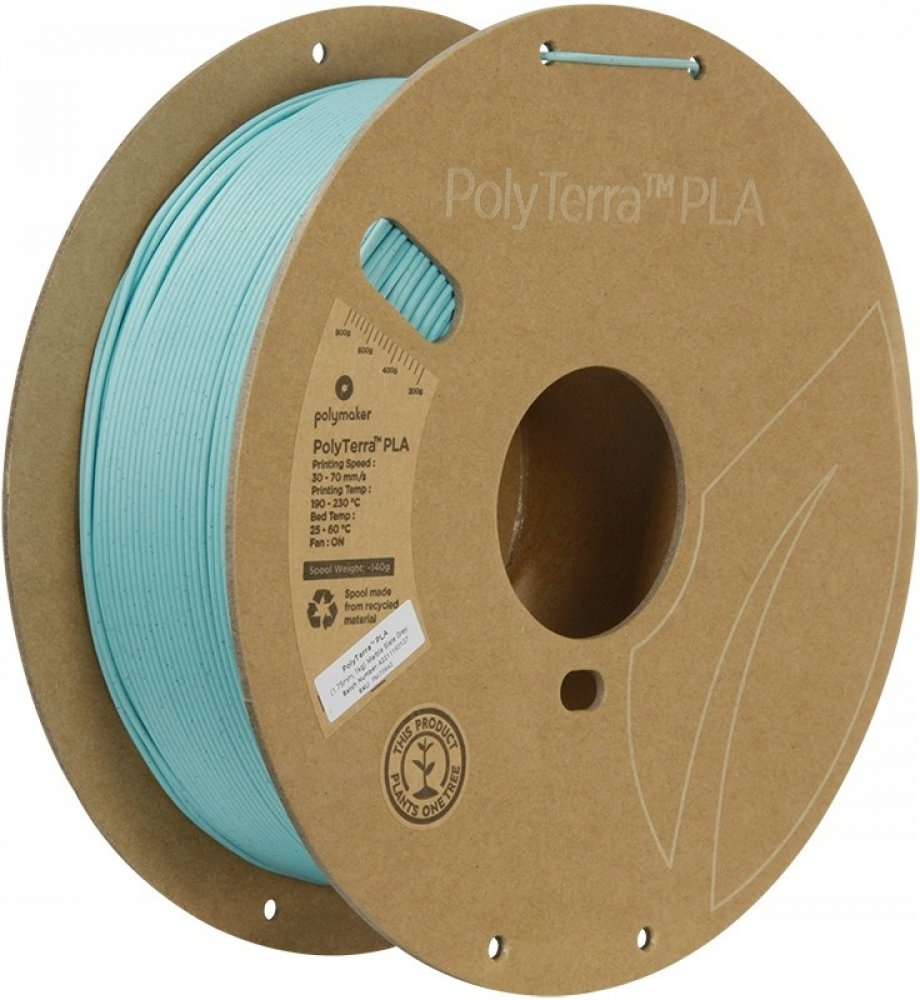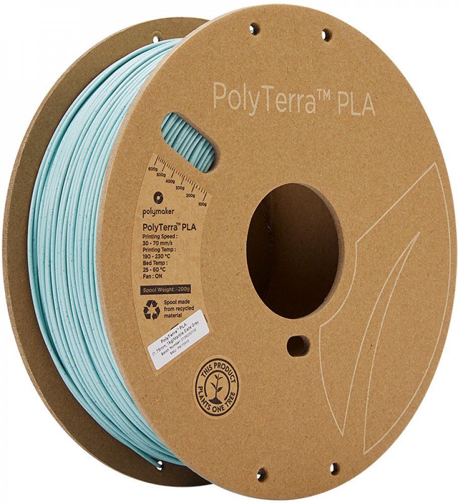 PolyTerra PLA je 3D tiskové vlákno na bázi bioplastu navržené od základu k vytvoření nové generace PLA, které poskytuje snadné použití, kvalitu tisku, rychlost a spolehlivost. Jedná se o udržitelný produkt pocházející z přírodních zdrojů a za každou vyrobenou cívku je zasazen strom, aby se vrátil zemi.
