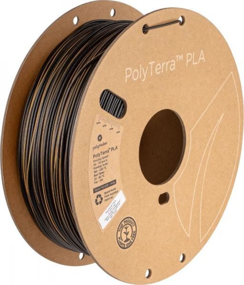 PolyTerra PLA vlákno je zcela biologicky odbouratelný a ekologický materiál. Kombinuje organické materiály s PLA a zároveň snižuje množství plastů, které obsahuje. Výrobek byl navinut na kartonové cívce . Polymaker se navíc zavázal zasadit jeden strom za každou prodanou cívku .