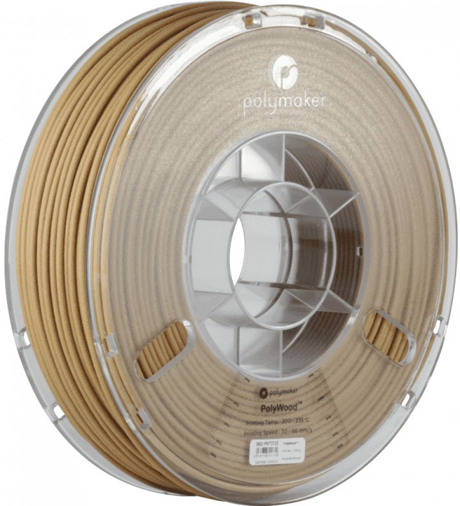 Polymaker Polywood Filament Polymaker PolyWood ™ je tisková struna podobná dřevu, která však neobsahuje částice dřeva a eliminuje tak riziko ucpání trysky. PolyWood ™ je vyroben výhradně z PLA pomocí speciální technologie pěny.