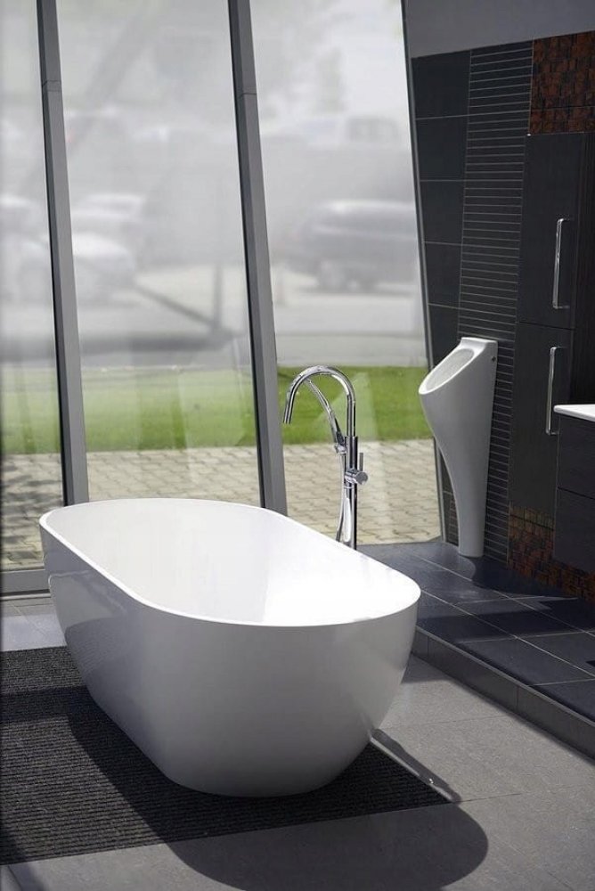 Úzký okraj vany nabízí vnitřní prostor srovnatelný s klasickými vanami o délce 170 cm.