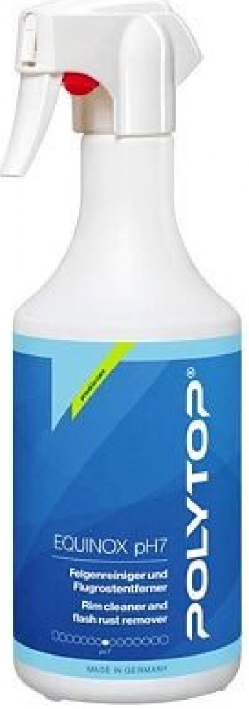 Equinox pH7 je hybridní speciální čisticí prostředek bez obsahu kyselin s indikátorem barvy účinné látky pro odstraňování nečistot, poletové rzi a brzdového prachu. Vysoce účinná čistící formulace se po postřiku změní na fialovou a tím aktivním způsobem zobrazuje efektový proces. Vzhledem k neutrální hodnotě pH nejsou sklo, dekorativní výlisky, plasty a kovy napadány. Velmi dobrá přilnavost povrchu. Je také vhodný pro použití na citlivých ráfcích a brzdových systémech. Vlastnosti: pro vrchní laky a ráfky pH-neutrální vzorec ndikátor aktivního procesu PH: 7,0 Oblast použití: Odstranění poletové rzi, nečistot na povrchu laku a brzdového prachu z brzdových komponent a ráfků kol. Aplikace: Aplikujte Equinox pH7 v nezředěné podobě od spodu směrem nahoru na suchý a chladný povrch a nechte působit, dokud indikátor barvy aktivní látky nebude intenzivně fialově zbarven. Nechte ráfky předem vychladnout. V případě potřeby přepracujte štětcem nebo kartáčem. Po expozici důkladně opláchněte silným proudem vody nebo vysokotlakým čističem. Balení: 500ml s rozprašovačem