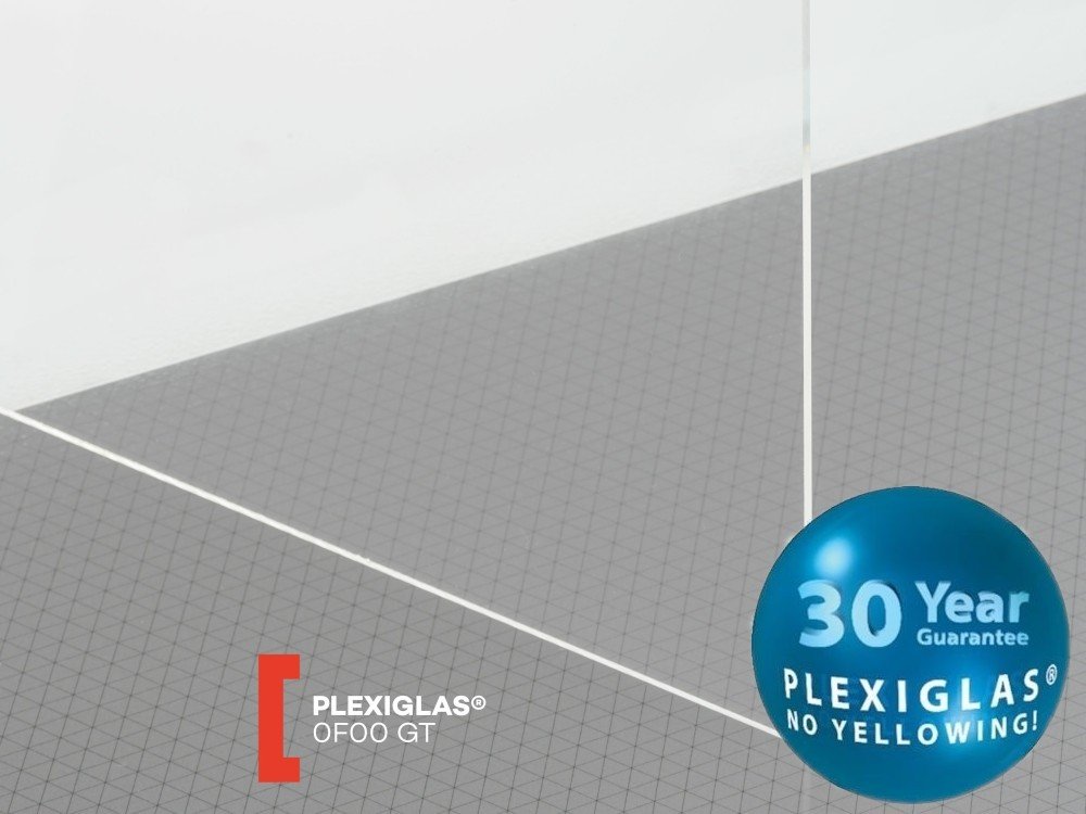 Lité plexisklo Plexiglas GS čirá 0F00 tloušťky 2 mm je velmi kvalitní druh plexiskla. Materiál je UV-nepropustný, vysoce odolný proti UV záření a povětrnostním vlivům, poskytujeme 30-letou záruku na nežloutnutí. Obě povrchové strany těchto desek z plexiskla jsou hladké a vysoce lesklé, dodávané s ochrannou folií. Široké použití v reklamě, stavebnictví a průmyslu. Výroba litím znamená, že materiál se naleje mezi dvě skleněné desky a v peci postupně chládne. Tímto získává menší vnitřní pnutí, avšak větší tloušťkovou toleranci než extrudované plexisklo.