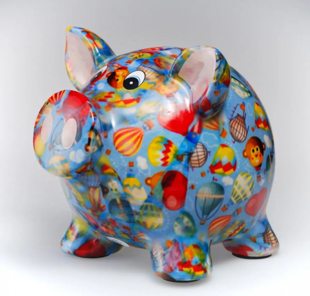 Prasátko se už po generace pojí se spořením. Tato keramická varianta nabízí moderní a barevné pojetí. Pokladnička prasátko modré barvy s dekorem postaviček přitahuje pozornost a motivuje k ukládání peněz.