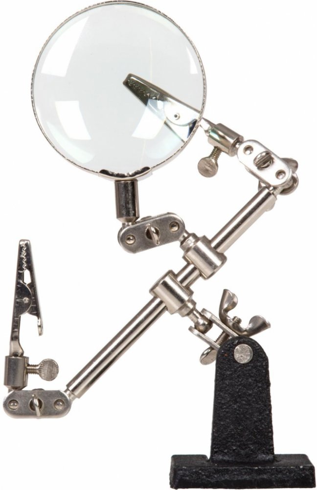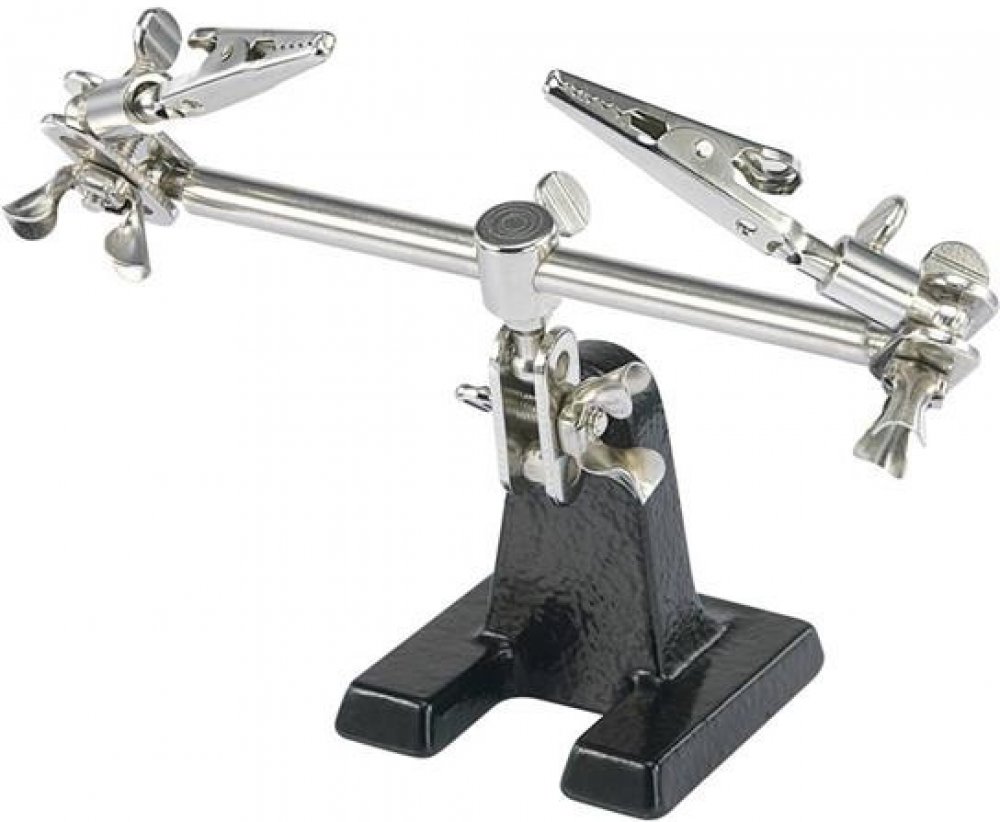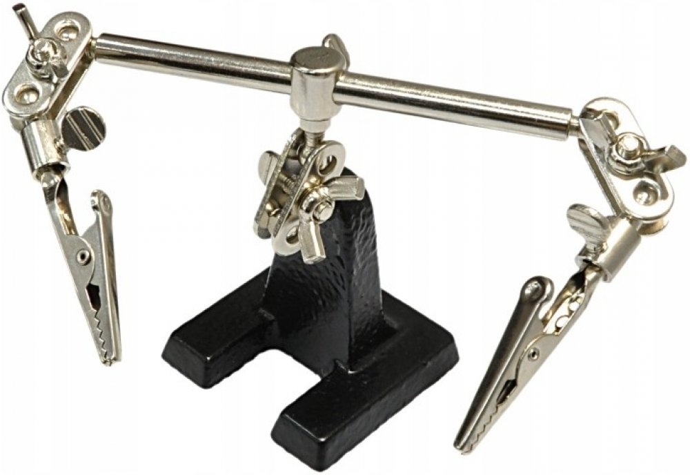Třetí ruka ZD-10F se skládá z litinového stojanu a ze dvou krokosvorek. Užitečný pomocník pro drobné montáže, např. pájení. Vysoká stabilita díky litinovému podstavci.Technické parametry:- 2 svorky pro uchycení- rozměr: 260 x 190 mm- hmotnost: 350 g